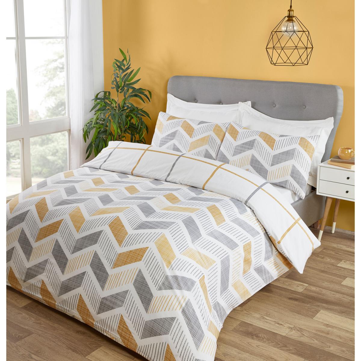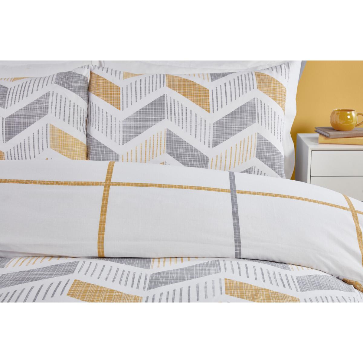 Upgrade your bedroom with this super stylish Nevada Duvet Cover and Pillowcase Set. This modern duvet set is reversible, boasting a geometric design on one side and a wide check on the other, so you can choose which trendy pattern to have each day. Available in teal or ochre, this contemporary duvet cover comes with matching pillowcases.