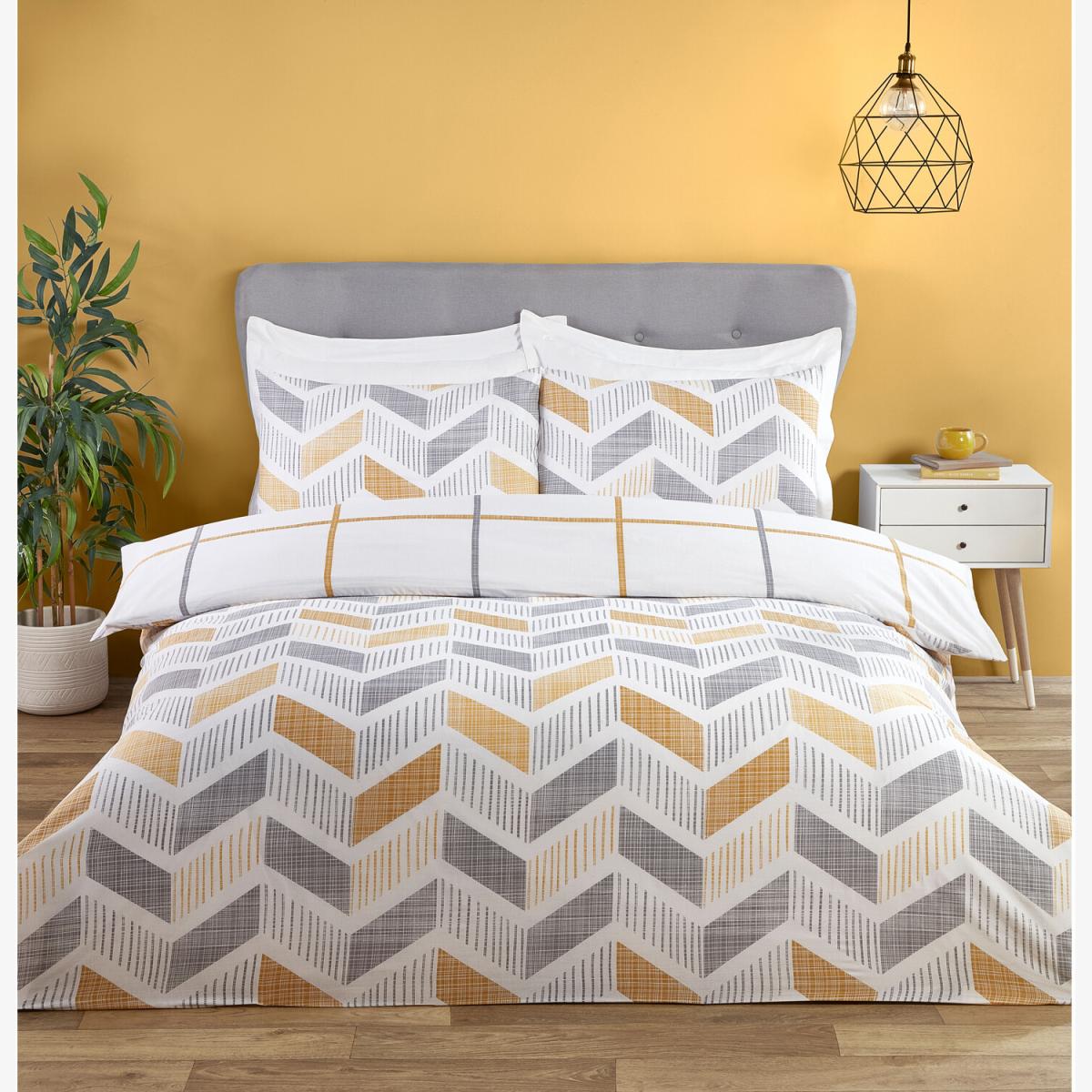 I really like this duvet set for its bold ochre colour and modern geometric pattern, which adds warmth and visual interest to a room. It works particularly well in contemporary or Scandinavian interiors where muted tones are complemented by statement textiles. As a stylist, I’d suggest pairing it with neutral or grey bedding and accenting with natural textures like wooden or rattan accessories for a balanced look. Practical tips include using it as a focal point in a minimalist space or layering it with soft throws and cushions in complementary colours for cosy, inviting bedrooms. Given its single size, it’s ideal for smaller bedrooms, guest rooms, or kids’ rooms where a pop of colour makes a big impact without overwhelming the space.