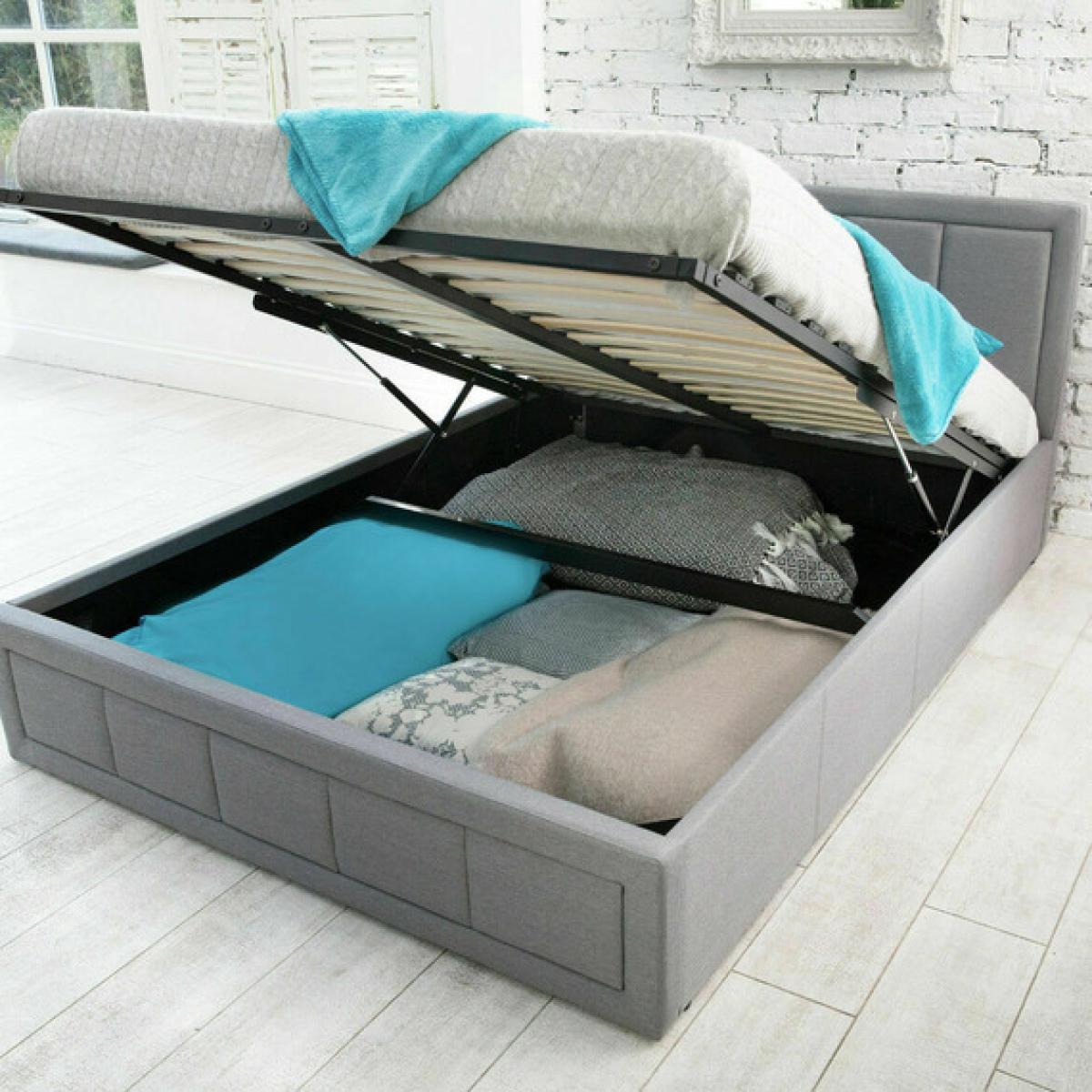 NEVADA Grey Linen Fabric Ottoman Storage Bed DOUBLE - Grey