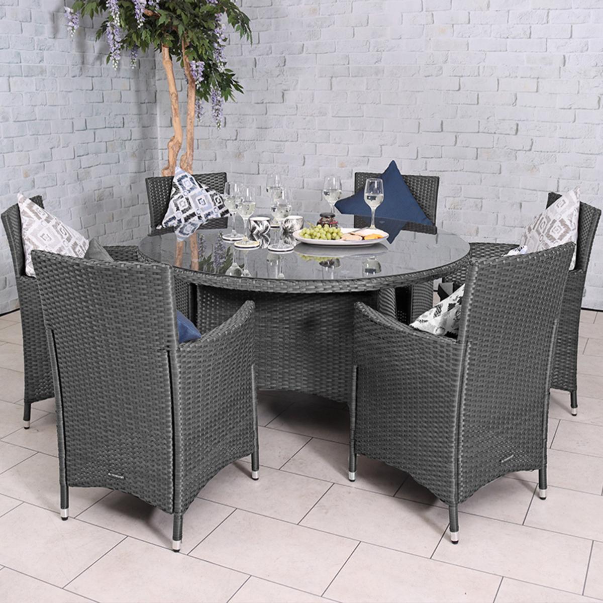 The Nevada Round 6 Seater Dining Set in grey is a versatile choice that works well in both modern and traditional garden settings. Its neutral tone makes it easy to incorporate into various colour schemes and styles, from minimalist to more eclectic outdoor spaces. I love how its round shape encourages conversation and a welcoming atmosphere. To style it practically, use weatherproof cushions for added comfort, and consider pairing it with string lights or lanterns for evening illumination. Incorporating a mix of natural greenery and sophisticated tableware can elevate the look, making it perfect for casual family dining or alfresco entertaining. Overall, it’s a sleek, durable option that balances style and practicality.