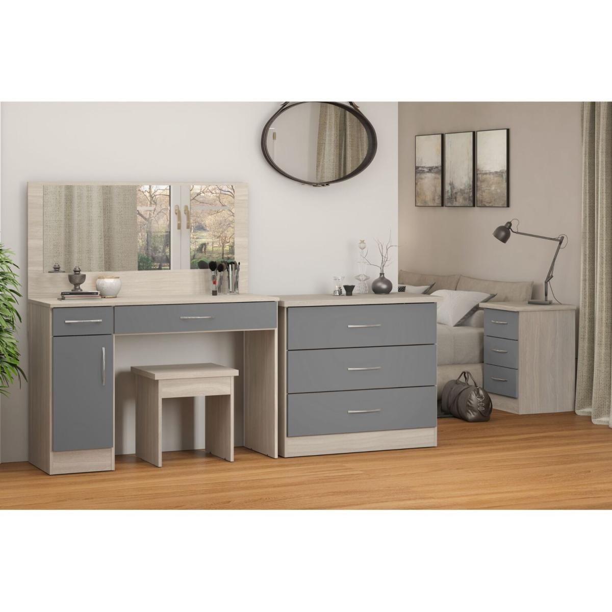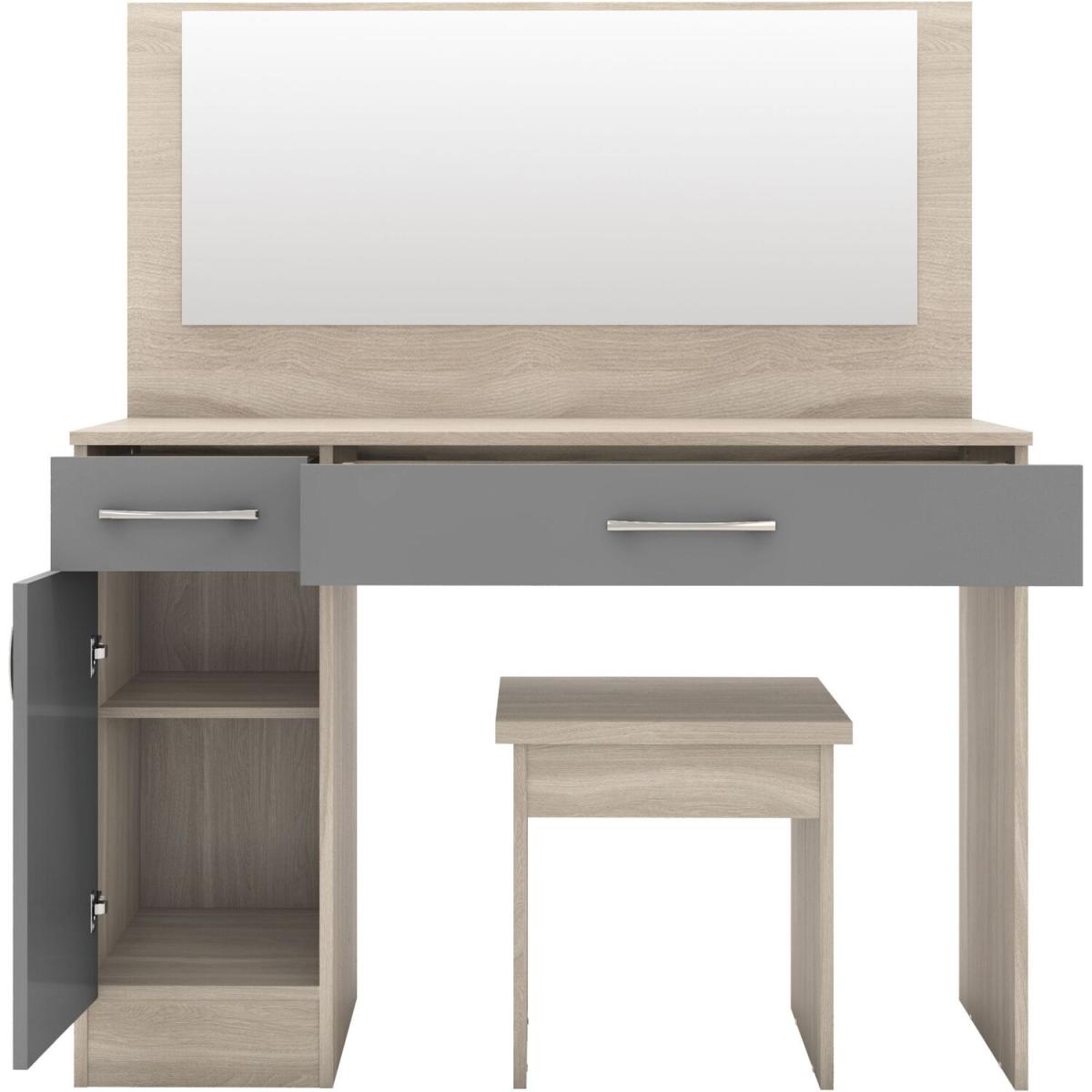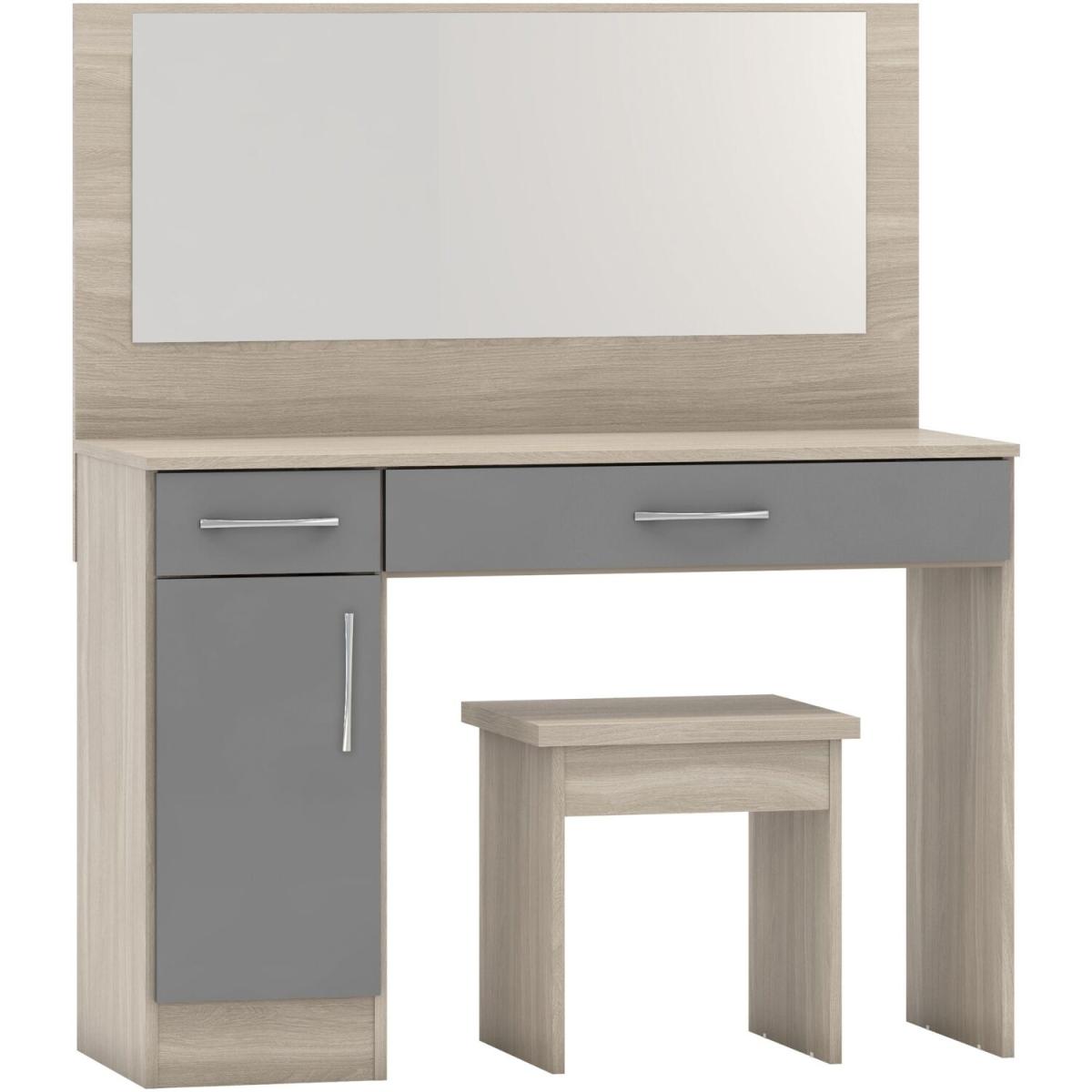 Nevada Vanity Dressing Table Set - grey Gloss, Light Oak