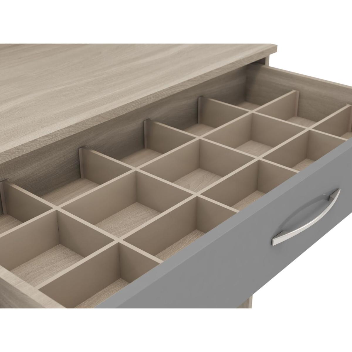I love this vanity set because of its versatile colour combination and modern design. The grey gloss finish paired with light oak accents makes it a great addition to contemporary or Scandinavian-style interiors, providing a clean, fresh look. It’s practical for smaller spaces due to its sleek profile, and the storage drawers help keep surfaces clutter-free. Styling tips include adding minimalistic jewellery trays or small decorative items to enhance its modern aesthetic without overwhelming the space. It works well in bedrooms with neutral palettes, but can also provide a striking contrast in more colourful or textured spaces, making it a flexible choice for various interior schemes.