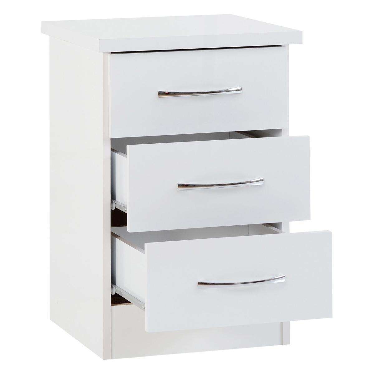 The Nevada White 3 Drawer Table features a contemporary design owing to the gloss finished front which contrasts perfectly with the metal handles. The Nevada has your storage needs covered thanks to the ample drawer space which sits on sturdy metal runners. Please note, unfortunately we cannot deliver this item to Northern Ireland or the Channel Islands.