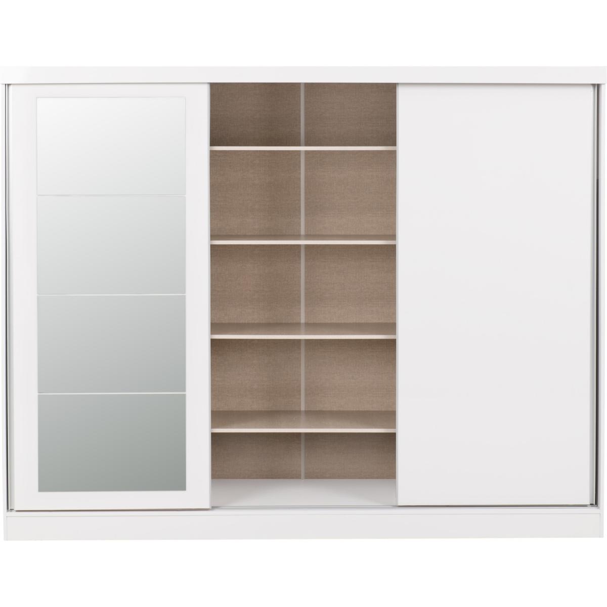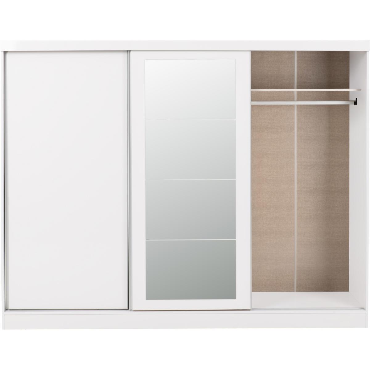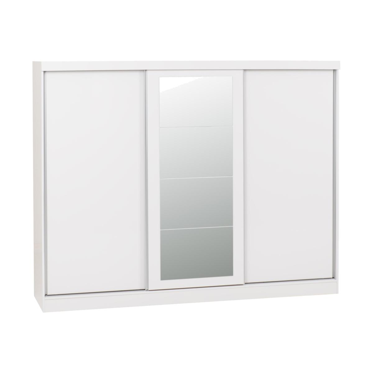 Features we love Space-saving design ideal for rooms with limited space Sturdy construction and quality materials ensure long-lasting durability Stylish white gloss finish adds a contemporary feel to any bedroom One of the wardrobe sliding doors has a full-length mirror Comprehensive instructions are included to make assembly a breeze All about me The Nevada 3-Door Sliding Wardrobe is constructed from a combination of durable materials and its stylish white gloss finish adds a contemporary feel to any bedroom, while including three sliding doors, a full-length mirror and six spacious shelves, ensuring there's plenty of room to Organize your clothes, shoes and accessories while this wardrobe strikes the perfect balance between style and functionality, making it ideal for maximizing storage space. Need to know Dimensions:W242.5 x D62 x H194 cm Packaging dimensions (3 boxes): W256 x D65.7 x H8.3 cm, W206.3 x D66 x H7.3 cm, W251.5 x D55 x H6.5 cm Weight: 161 kg Colour: White Finish: White Gloss Material:Composite Board Assembly required: Yes