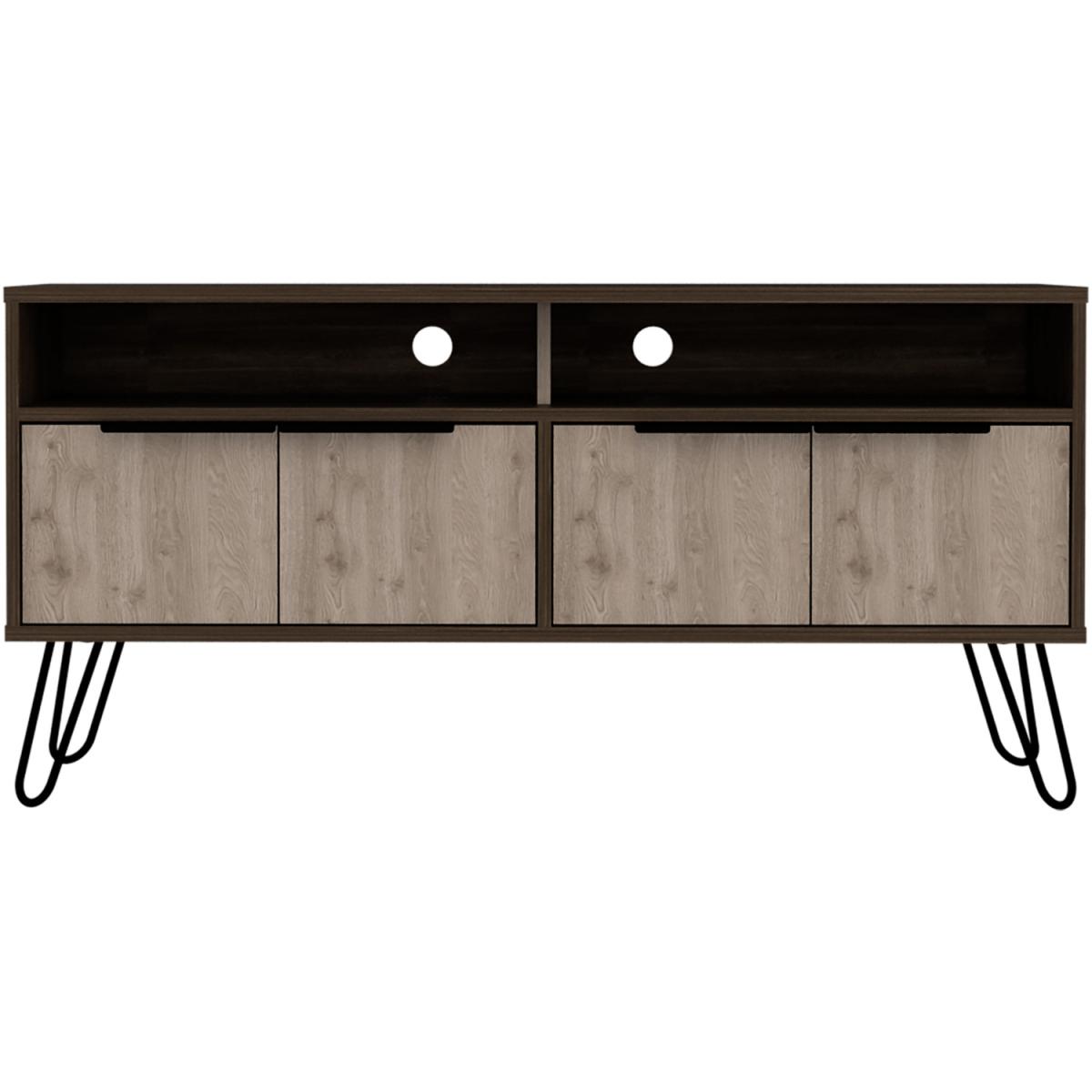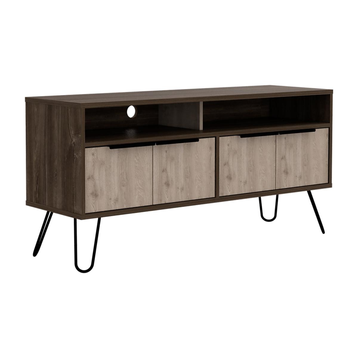 The Nevada collection is designed to give you a fresh outlook on making the most of your home, with innovative pieces which are ideal for todays casual living lifestyle. Each piece is designed to serve a practical purpose and can be used individually or combined with other pieces from our Nevada range for a fully co-ordinated look. Made from hardwearing manufactured boards. An easy to clean woodgrain textured smoked oak effect is used for the cabinets with bleached grey effect for the fronts and coordinating panels. The industrial feel is further accented with real metal black painted grip handles and hairpin legs. Our wide screen TV rack is ideal if you need to neatly store lots of accessories and gadgets. In addition to an expansive surface area for your TV there are also open areas with easy wiring access along with two separate enclosed areas behind two sets of double doors, great for hiding away DVDs, games and gadgets.