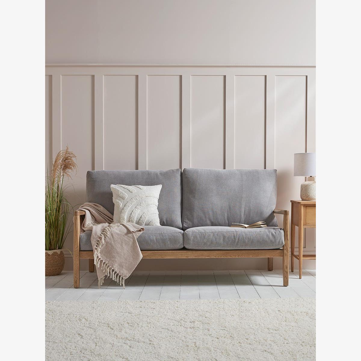 Our Neve sofa is the perfect addition to a gentle pared-back living space.  The darker wood tone paired with the warm grey upholstery creates a laid-back and minimalist style to this sofa, making it as stylish as it is comfortable.