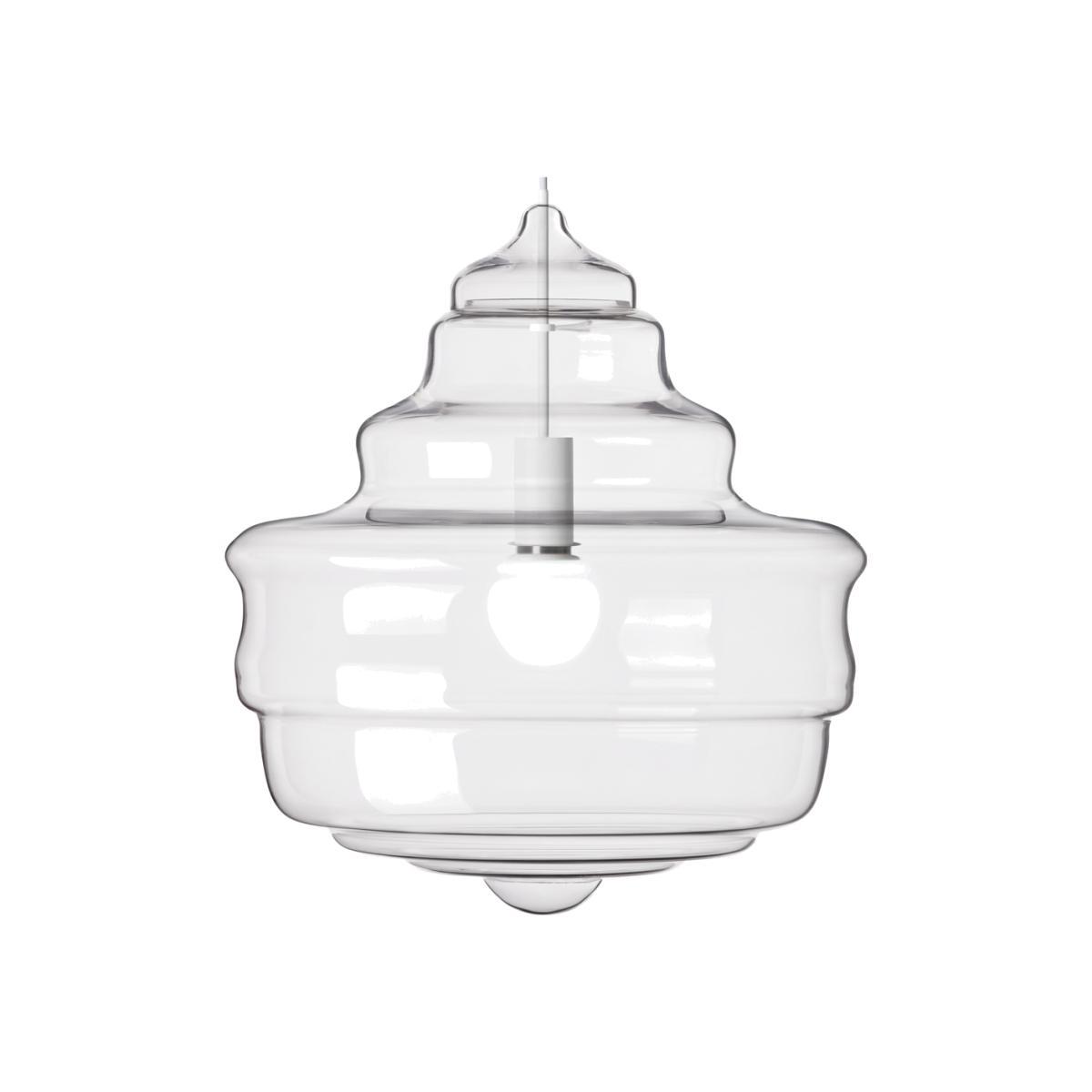 Designed to emulate iconic chandeliers from five of the world's most distinguished concert halls and theatres, the Neverending Glory Palais Garnier lighting collection is the work of design duo Jan Plechác and Henry Wielgus. Created for prestigious Czech lighting manufacturers, Lasvit, the sophisticated collection showcases the designers' free-spirited creativity and imaginative innovation. Hand-blown by artisanal craftsmen, the Palais Garnier pendant has a fluid silhouette, inspired by the opulent central chandelier of its namesake, and is available here in clear, iridescent, opal or smoked glass finishes. To create the design Plechác and Wielgus have distilled the ornate bronze and crystal muse down to a contemporary glass interpretation. By rotating an outline of the chandelier, the designers formed this fluid, captivating pendant that appears to continually spin while remaining ephemerally still. Employing precision skill and the finest traditions and techniques, Jan Plechác and Henry Wielgus have interpreted the nostalgia of Palais Garnier in Paris in this opulent, modern pendant light. Requires 1 x E27 2700. K 420lm LED bulb (not included).