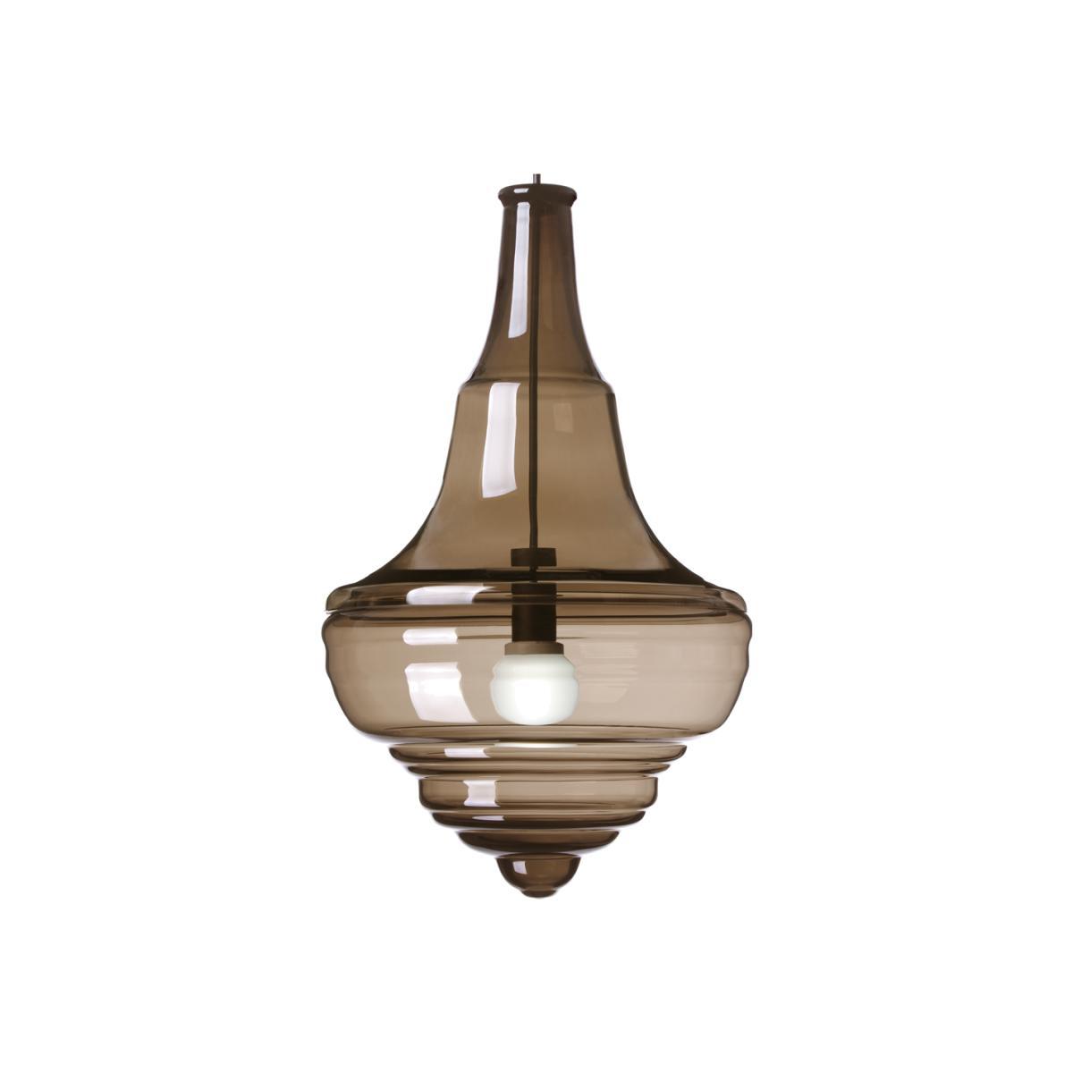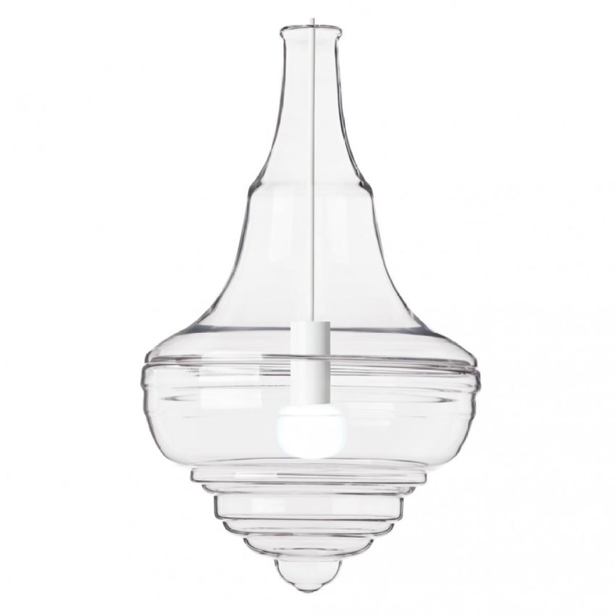 Designed to emulate iconic chandeliers from five of the world's most distinguished concert halls and theatres, the Neverending Glory Prague Estates lighting collection is the work of design duo Jan Plecháč and Henry Wielgus. Created for prestigious Czech lighting manufacturers, Lasvit, the sophisticated collection showcases the designers’ free-spirited creativity and imaginative innovation, and is available here in clear, iridescent, opal or smoked glass finishes. Hand-blown by artisanal craftsmen, the Prague Estates pendant has a fluid silhouette, reminiscent of an inverted bulb that was inspired by the opulent central chandelier of the Estates Theatre in Prague, which was also the prestigious site that debuted Mozart’s ‘Don Giovanni’. The design was realised by spinning and rotating its chandelier muse to create this fluid, distilled form that ripples downwards, appearing continually in motion yet ephemerally still all at once. Employing precision skill and the finest traditions and techniques, Jan Plecháč and Henry Wielgus have interpreted the nostalgia of Estates Theatre in Prague this opulent, modern pendant light. Requires 1 x E27 2700. K 420lm LED bulb (not included).