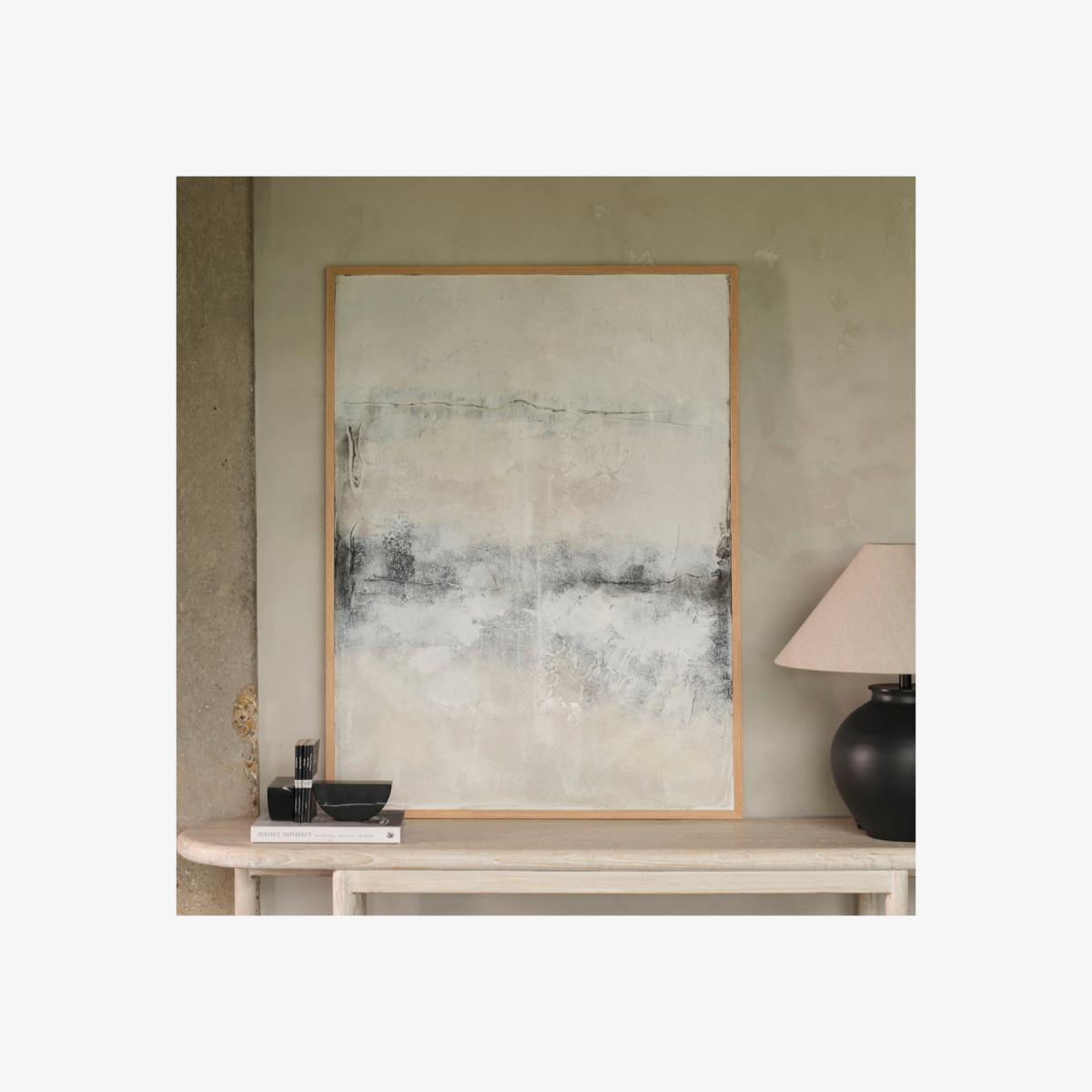 The Nevao luxury wall art has beautiful tones ranging from soft stone base colour highlighted with charcoal grey and touches of blue. A light and airy design it has just the right balance of colour depth whilst maintaining an elegant simplicity. Choose with or without oak frame according to your taste. Hand painted by a Danish artist on the finest canvas using acrylic paints. Since each one is hand painted slight variations may occur and therefore each piece is unique.