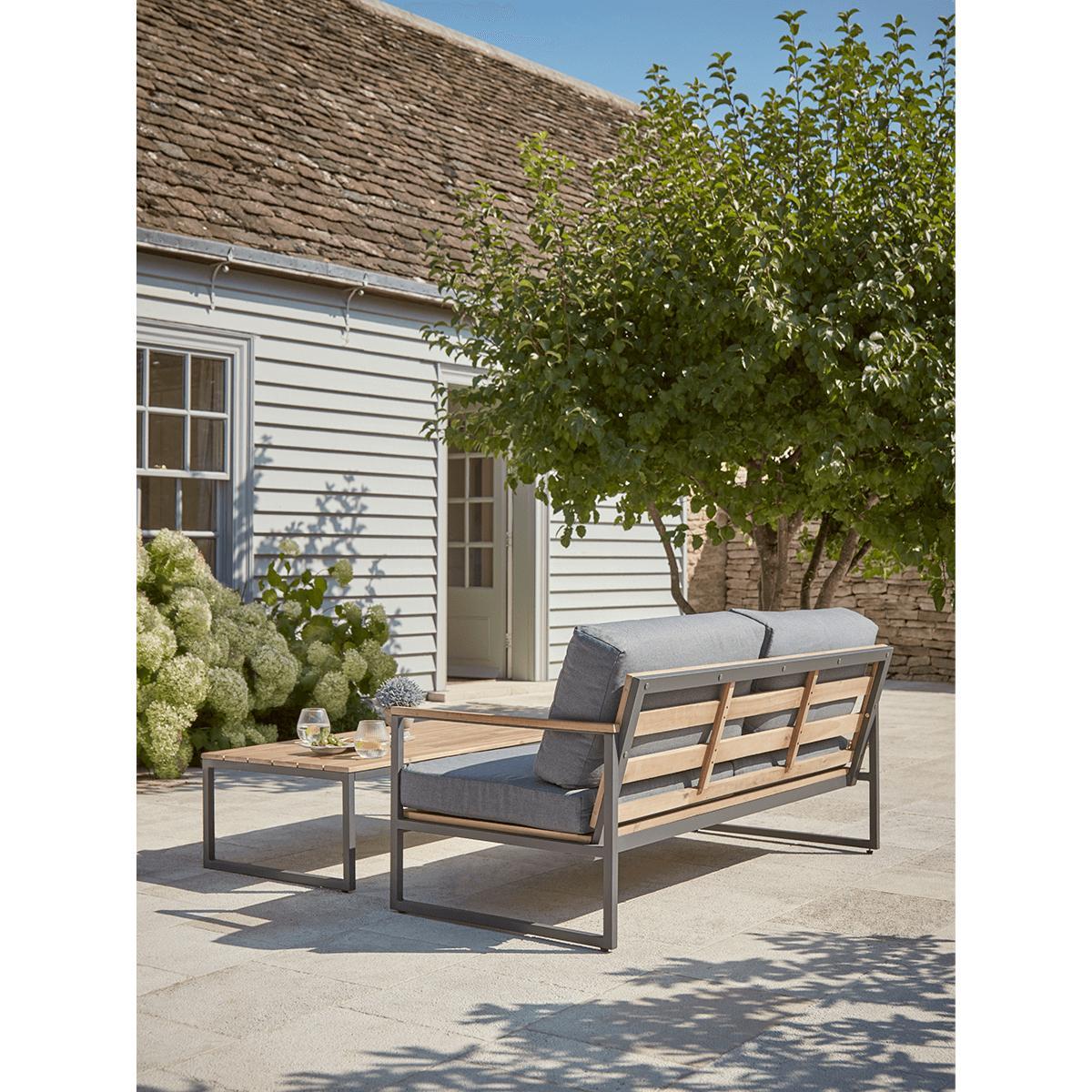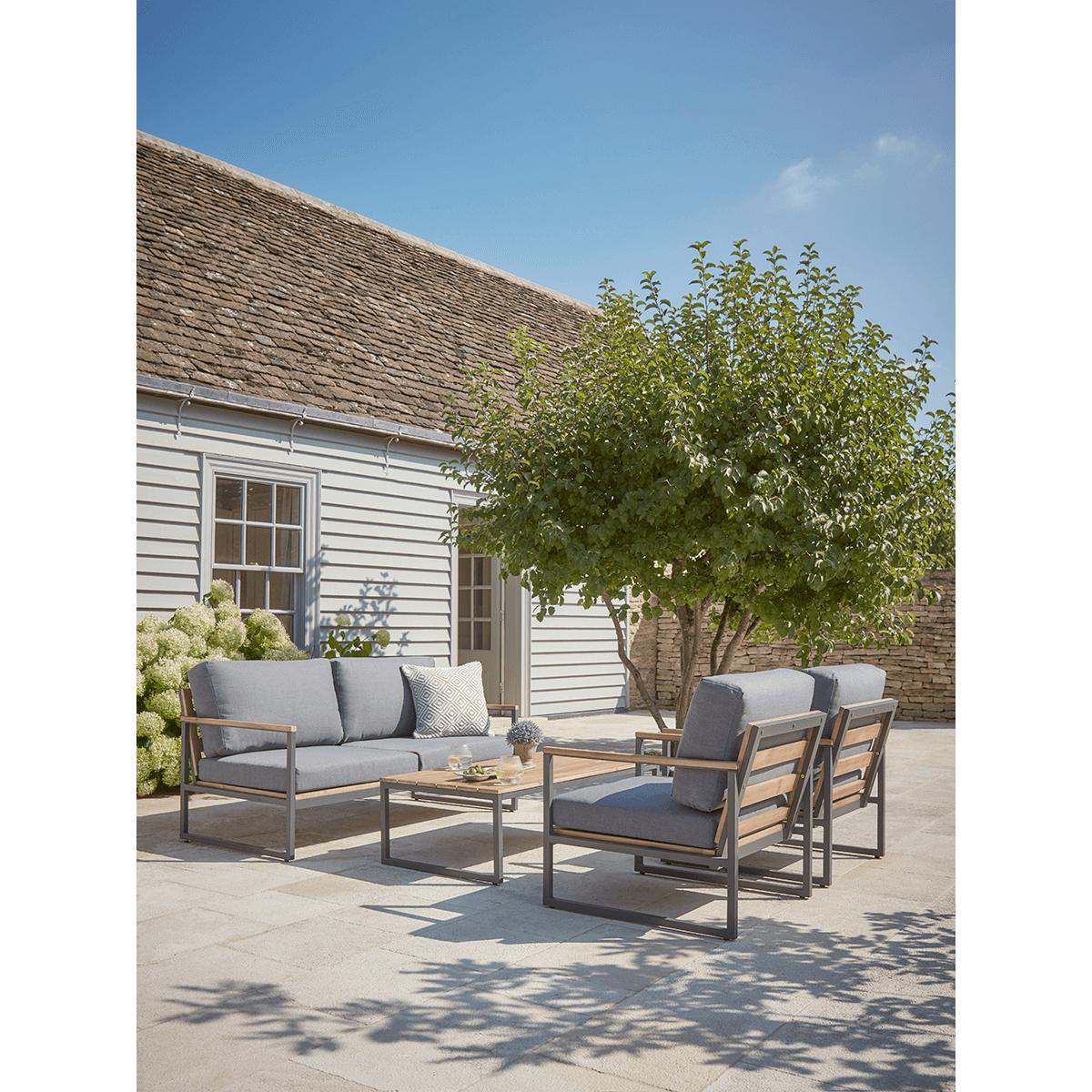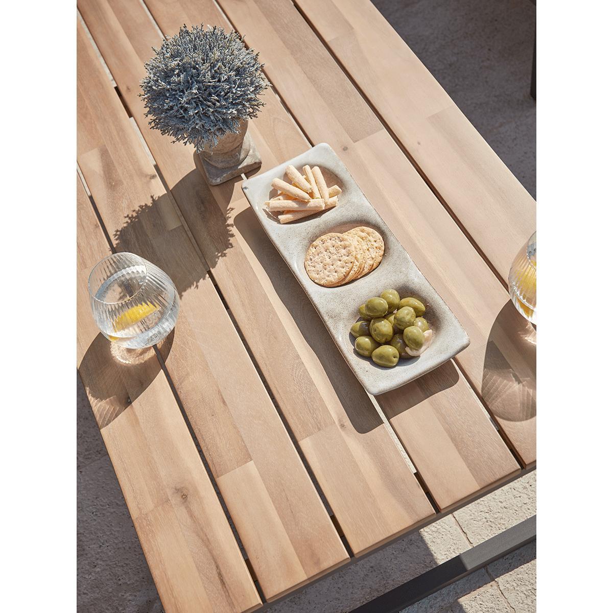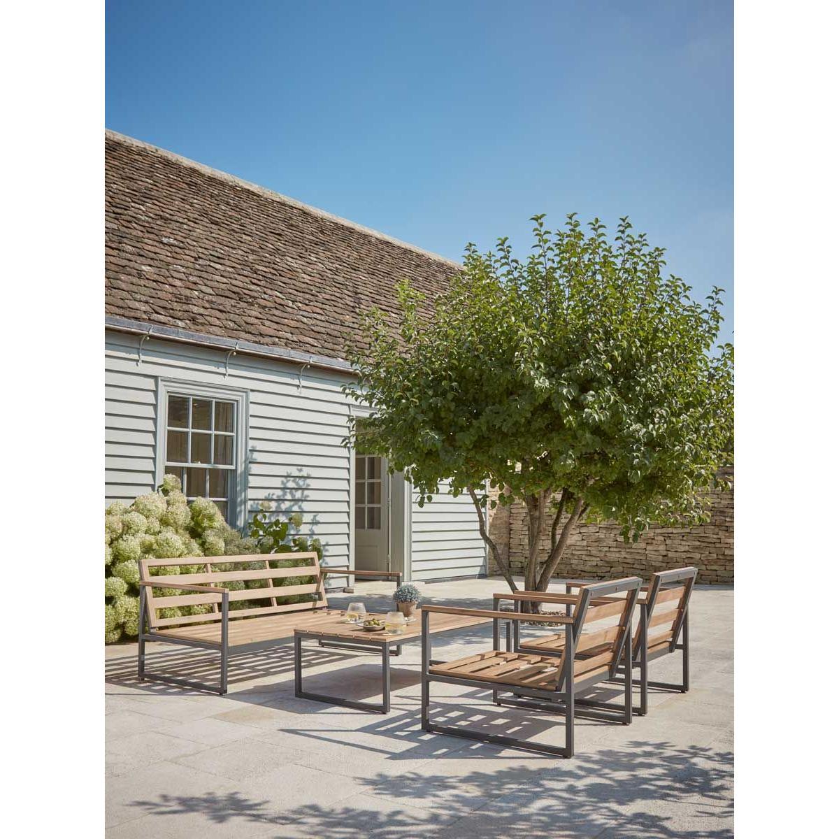 Despite its quite industrial looking aluminium and acacia wood framework, the Albany Lounge Set has cushions so plump you will want to loll in these seats all day long. The set includes a bench, two chairs and a table which offers great flexibility on positioning - keep things symmetrical or move the chairs around for a more organic grouping. Perfect when gathering family round for afternoon tea or unwinding over a bottle of wine into the evening with friends.