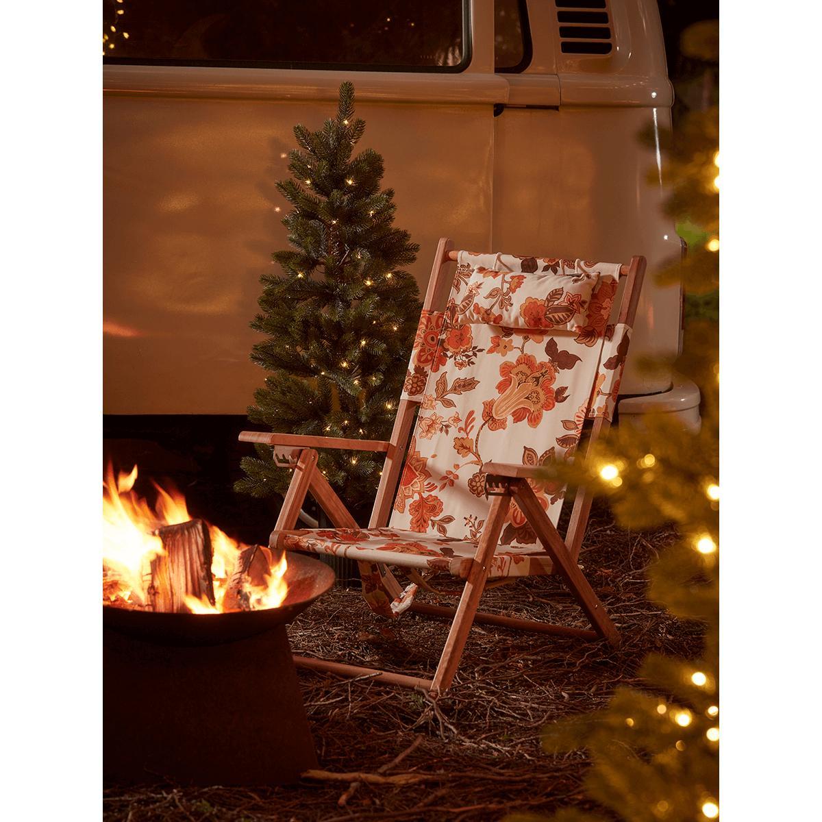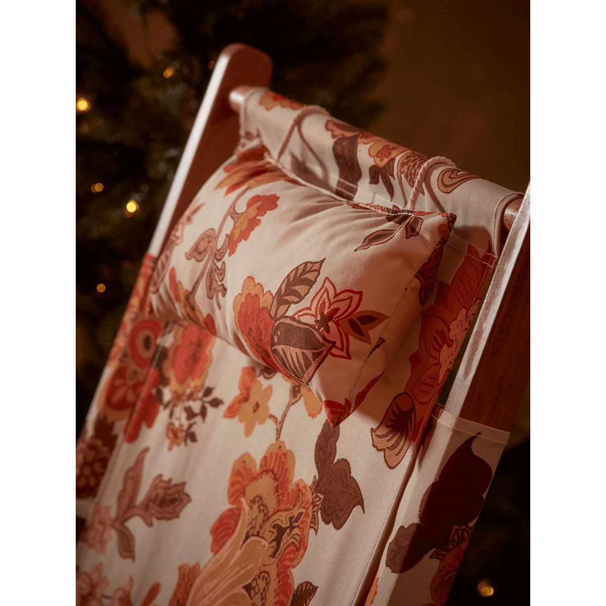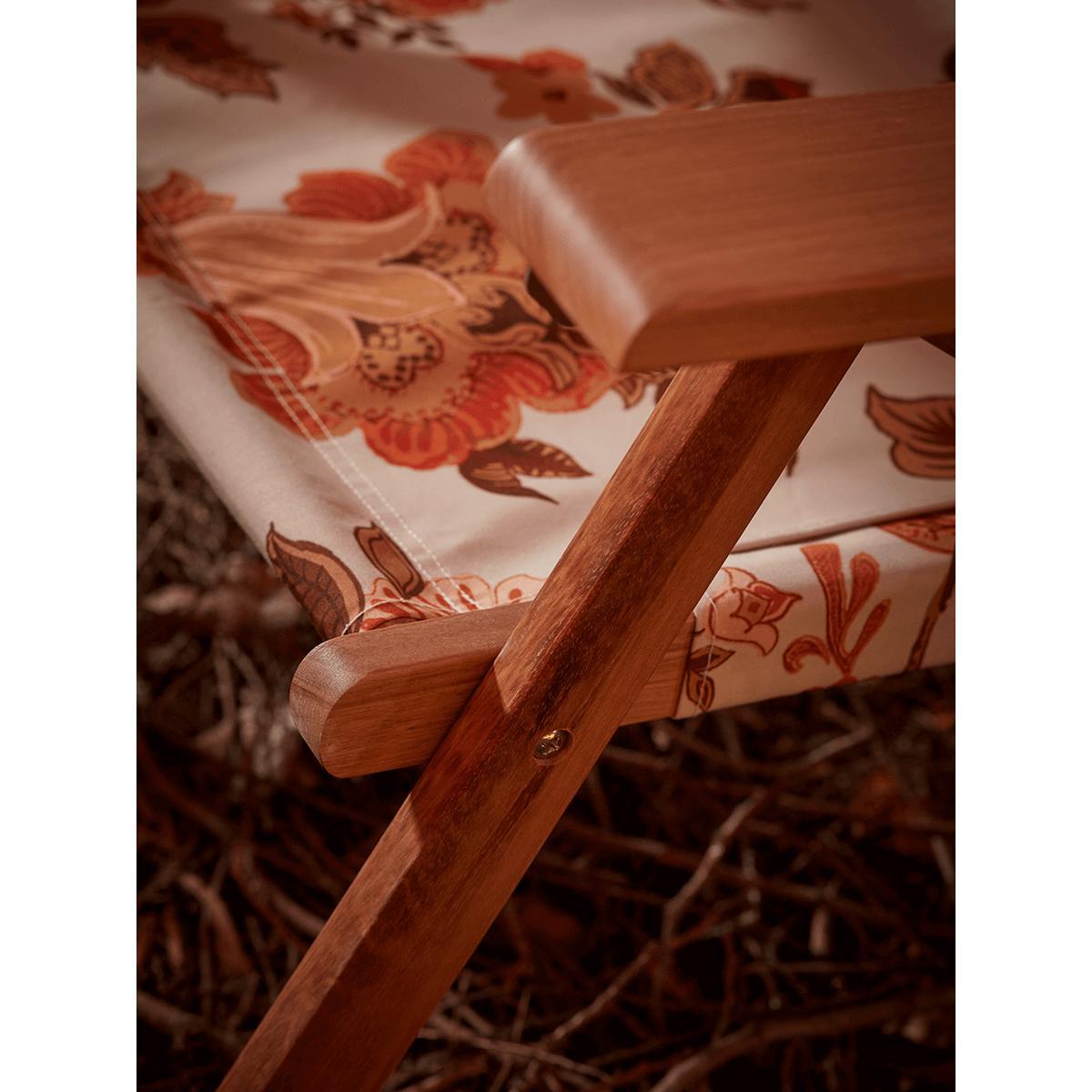 I love the relaxed vibe of this beach chair - it has a nostalgic feel with its floral paisley pattern, making it perfect for both outdoor and casual indoor settings. It works particularly well in bohemian or eclectic interiors, where pattern and colour are key features. For styling, pair it with textures like woven rugs, rattan accessories, or soft throw blankets to create a cozy outdoor lounge feel. This chair also lends itself to garden or patio areas, but it can brighten up a sunroom or covered verandah with its playful design. When arranging, keep the surrounding decor simple to let the pattern stand out, and consider adding string lights or small plants to enhance its laid-back charm.