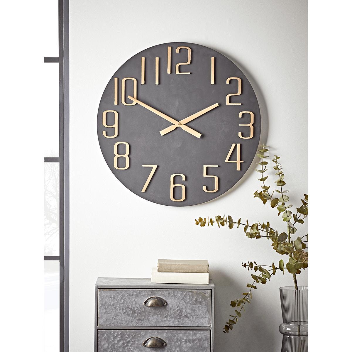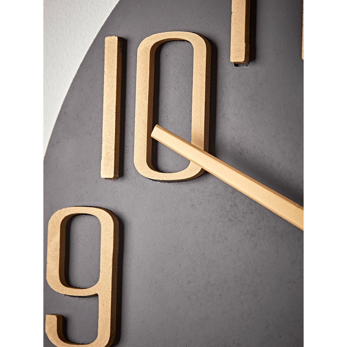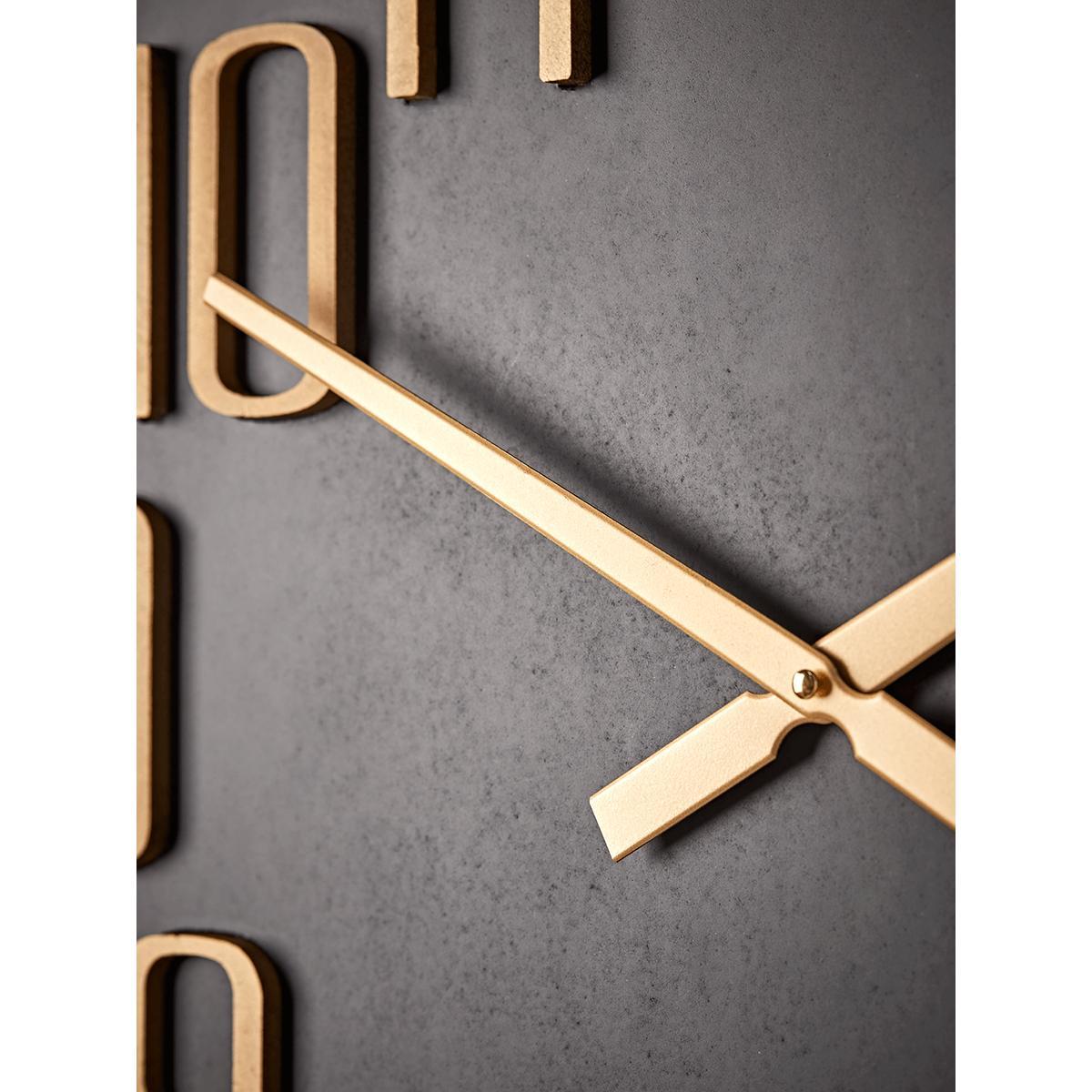 In matte black, with numerals and hands in a contrasting golden brass finish, this imposing wall clock will bring a sophisticated energy to your home. Striking enough to feature in any room, from lounge to bedroom, it’s also refreshingly clear to read the time on.