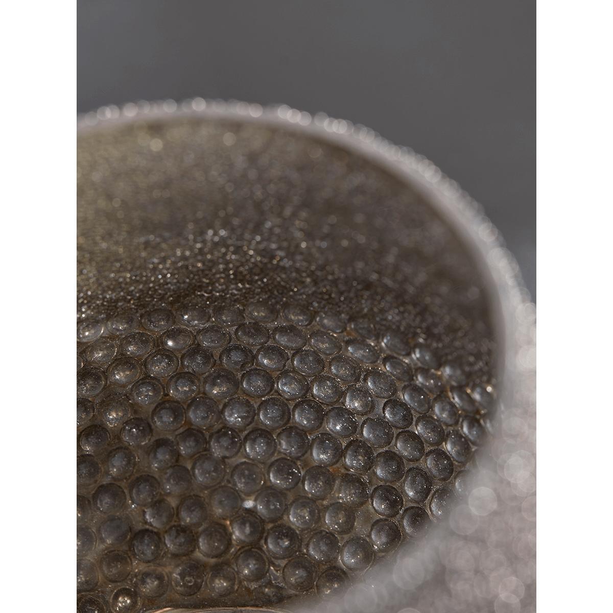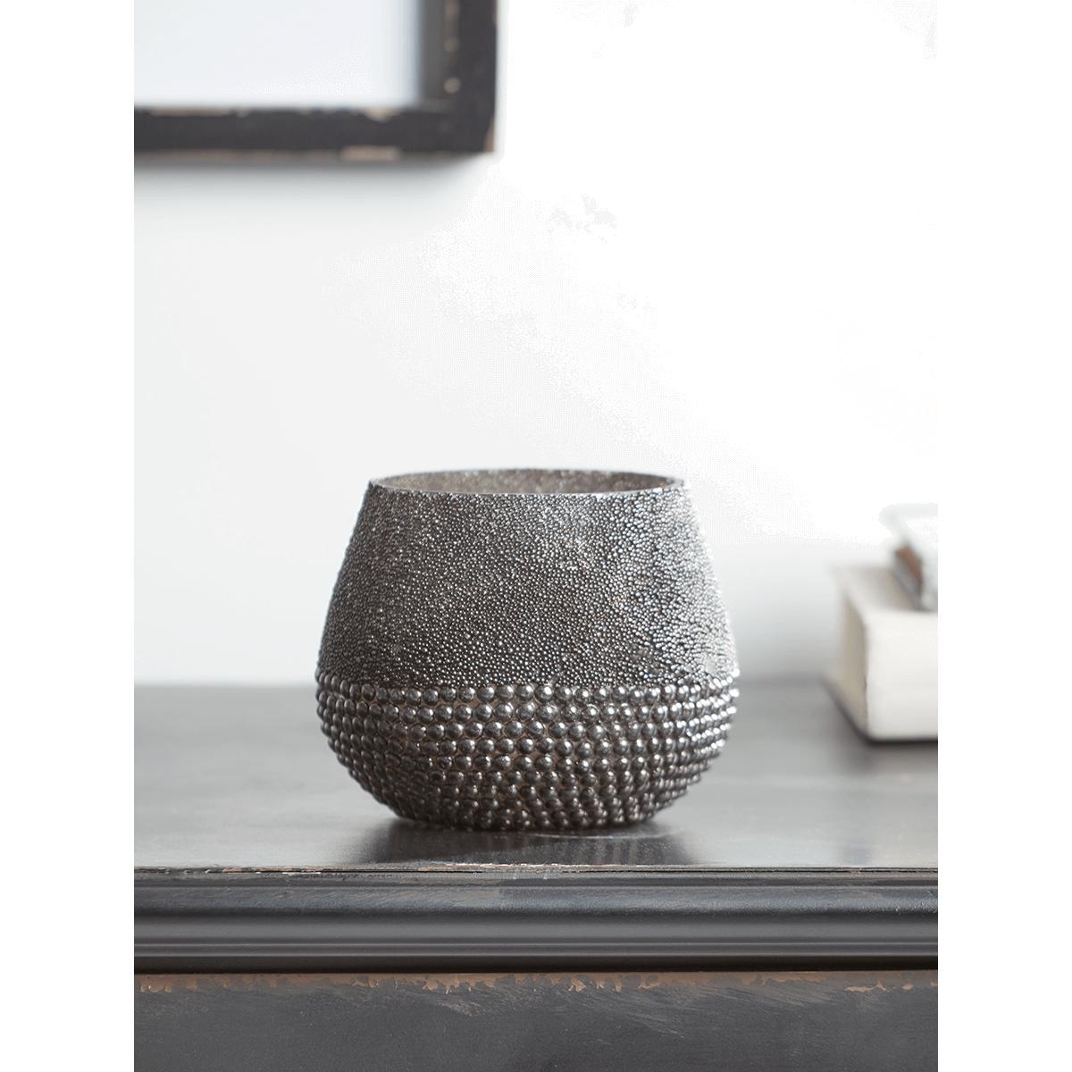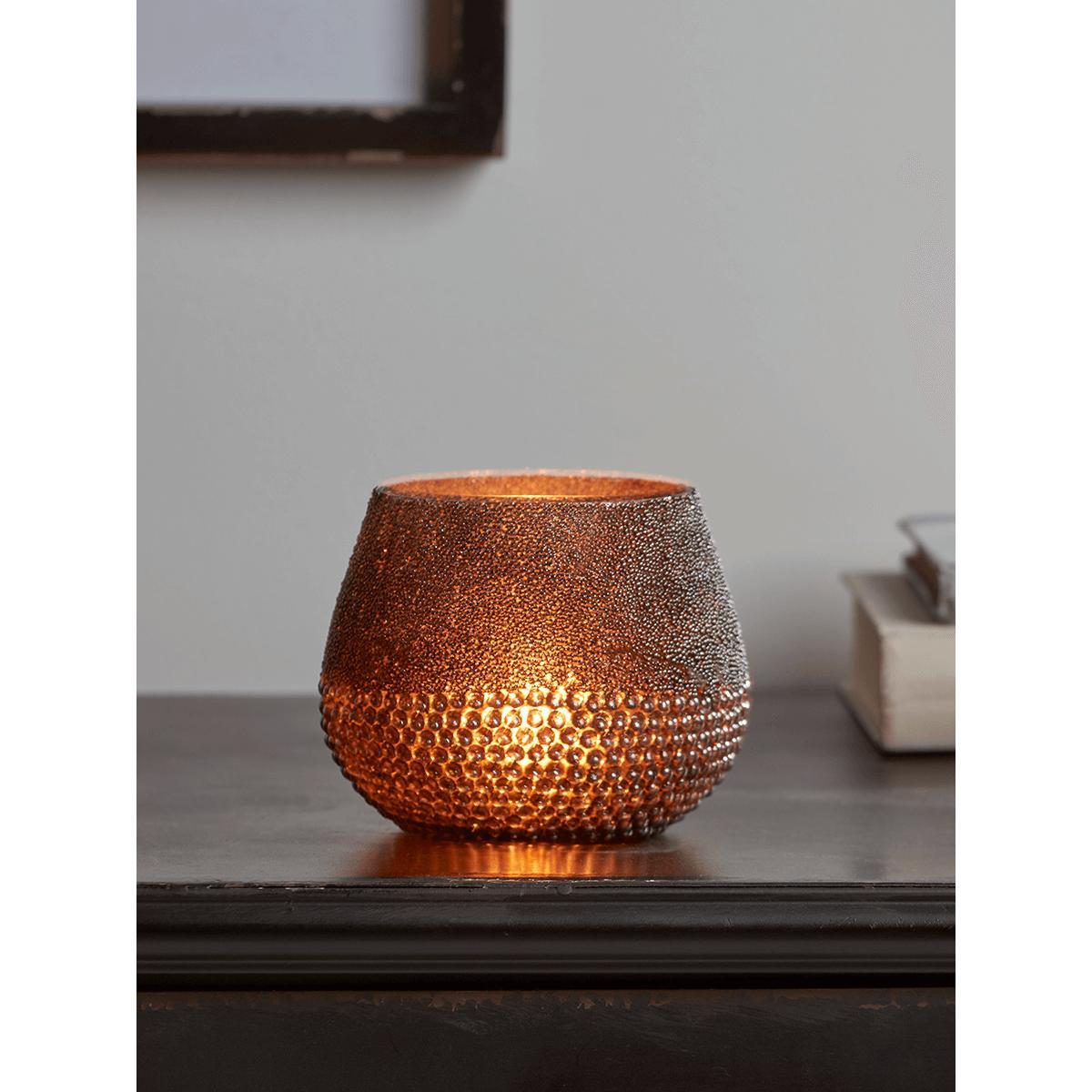 Turn the house into a home and communicate cosy with carefully placed candlelight and soft decorative light. Perfect for an industrial inspired style, our tealight holder is made of grey toned glass and comes with a textured surface and a studded base to cast a warm glow in your home.