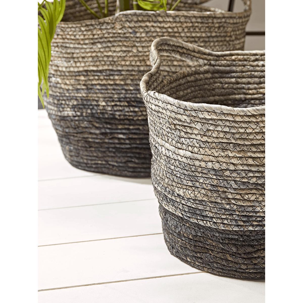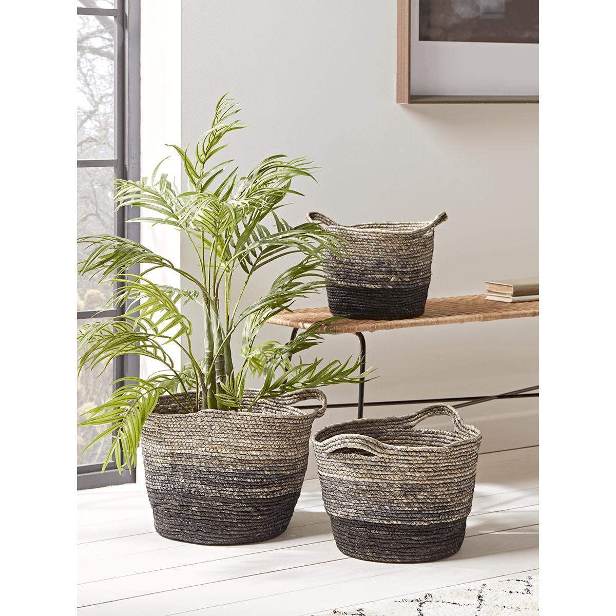 Crafted from cornleaf for a natural, lightweight feel, our three Black Ombre Storage Baskets are an ideal storage solution for any pared back interior with a soft spot for minimal monochrome design. Use them to store anything from trinkets and stationery to laundry and blankets, or even as a way to hide plain, boring plant pots.