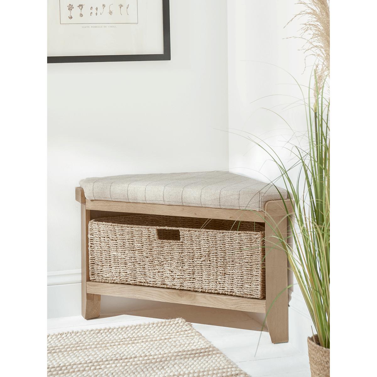 I love this bench for its practical yet understated design, which makes it a versatile addition to many interiors. Its classic oak finish and neutral cushion bring warmth and subtle texture, making it ideal for entryways, under windows, or cosy corners. It works particularly well in Scandinavian, farmhouse, or cottage-style schemes, but can also add a touch of natural simplicity to contemporary interiors. For styling tips, consider pairing it with a few neatly folded throws or cushions on the seat, or placing a decorative tray or a small pile of books on the basket for added visual interest. Its open storage beneath is perfect for keeping shoes, blankets, or other accessories neatly organised, helping to maintain a calm and clutter-free space.