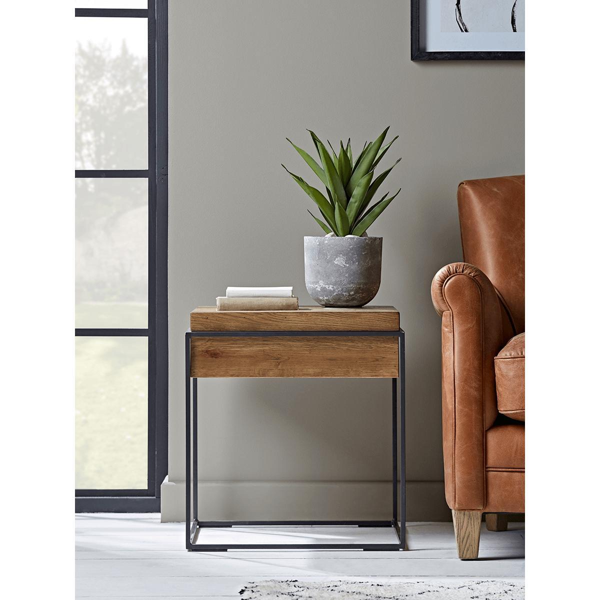 The design of our Burnt Oak Storage Side Table is clean and simple, but the richly toned oak with visible wood grain combines perfectly with the dark metal frame to create an impactful, industrial aesthetic. This ingenious piece also doubles up as a place to store books, toys and general clutter, as the top can be lifted away to reveal a generous storage compartment, so you can achieve a cool, collected look.