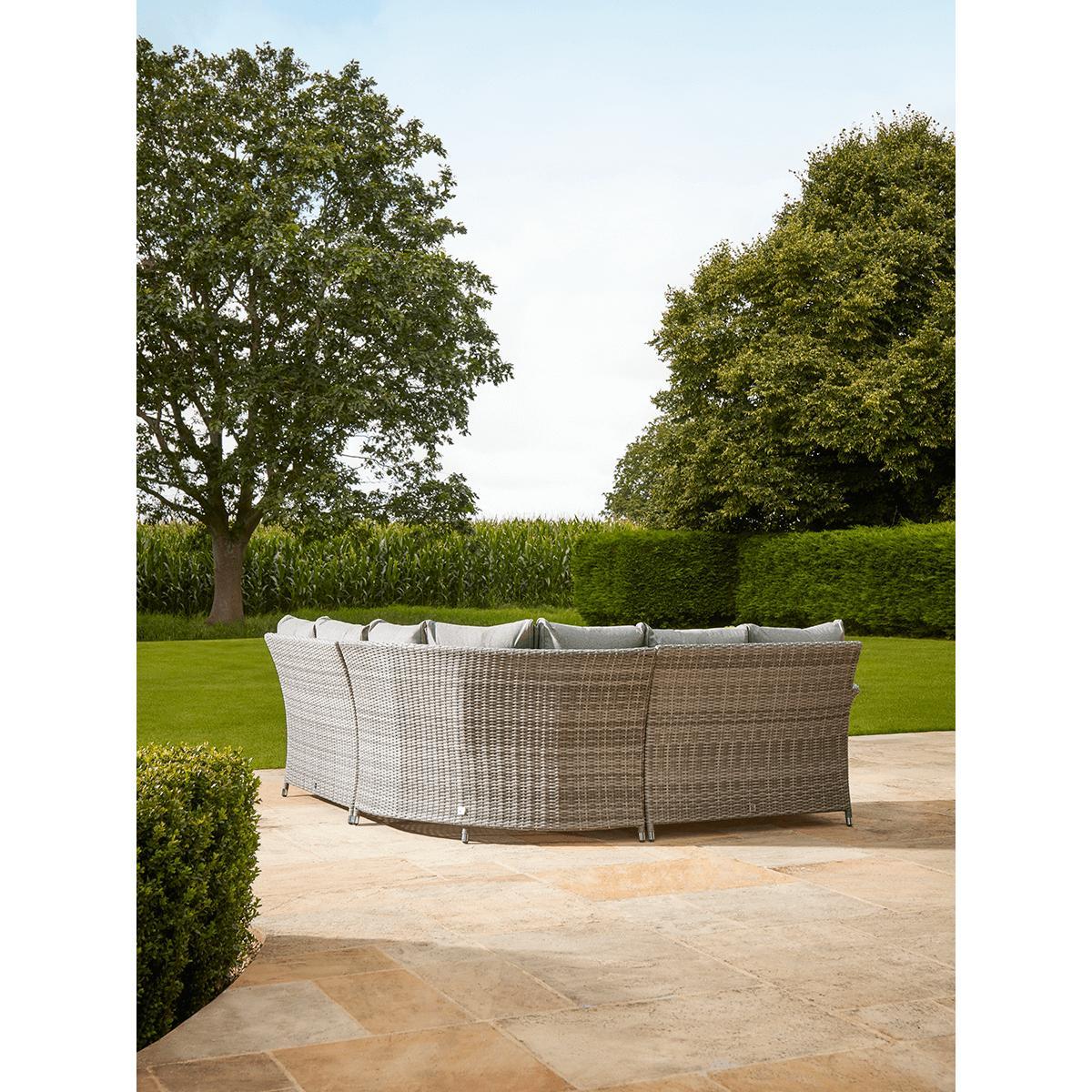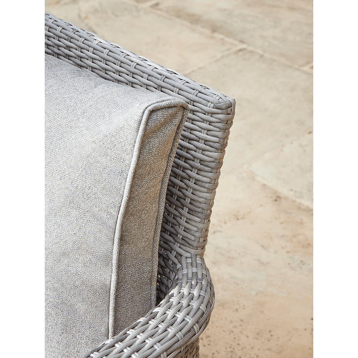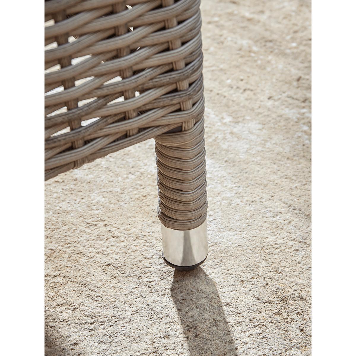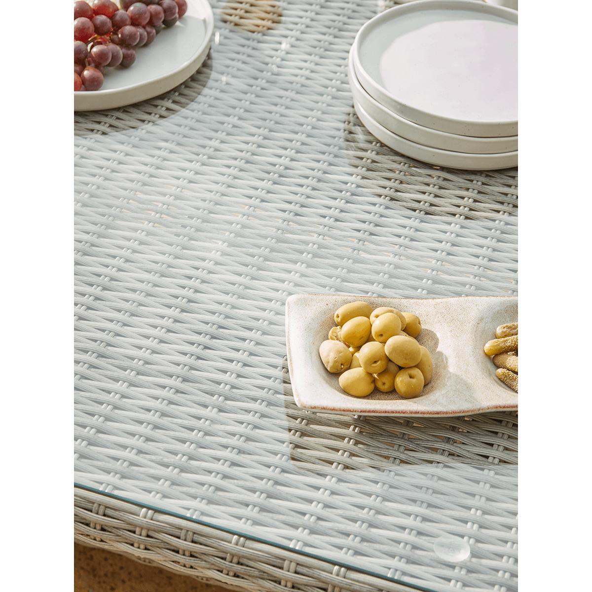 Our Cannes range features long lasting faux wicker and classic good looks that you will enjoy in your outdoor living space for years to come. The gently tonal changes in the pale sepia weave of this range gives a more authentic rattan effect while the curved edge on the cushions provides greater comfort. The Cannes Corner Dining Set offers superb versatility. The modular set can be arranged to make either a right or left-handed shape to suit your outdoor space. It will seat five people comfortably for a meal, and even more for drinks. In addition to the corner seat, there are two bench seats and a clever glass-topped table. Height adjustable, it takes you from a low table for drinks to a high table for dining in one easy move.