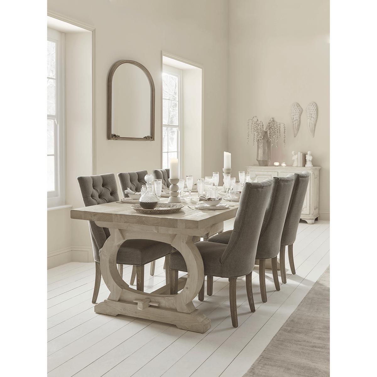 With a high, slender back and blanched solid oak legs, our Catalina Dining Chair has both clean form and classical style. A few of these perfectly scaled chairs, upholstered in an elegant yet practical linen, cotton and polyester blend, will go perfectly alongside our fabulous. Corinth Dining Table. To make a sophisticated theatrical statement.