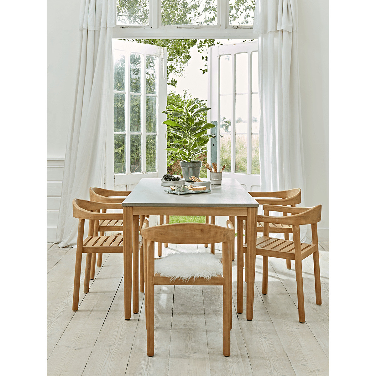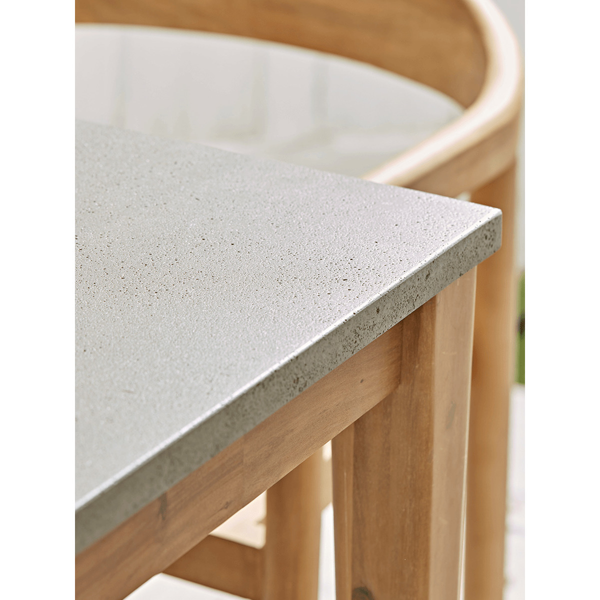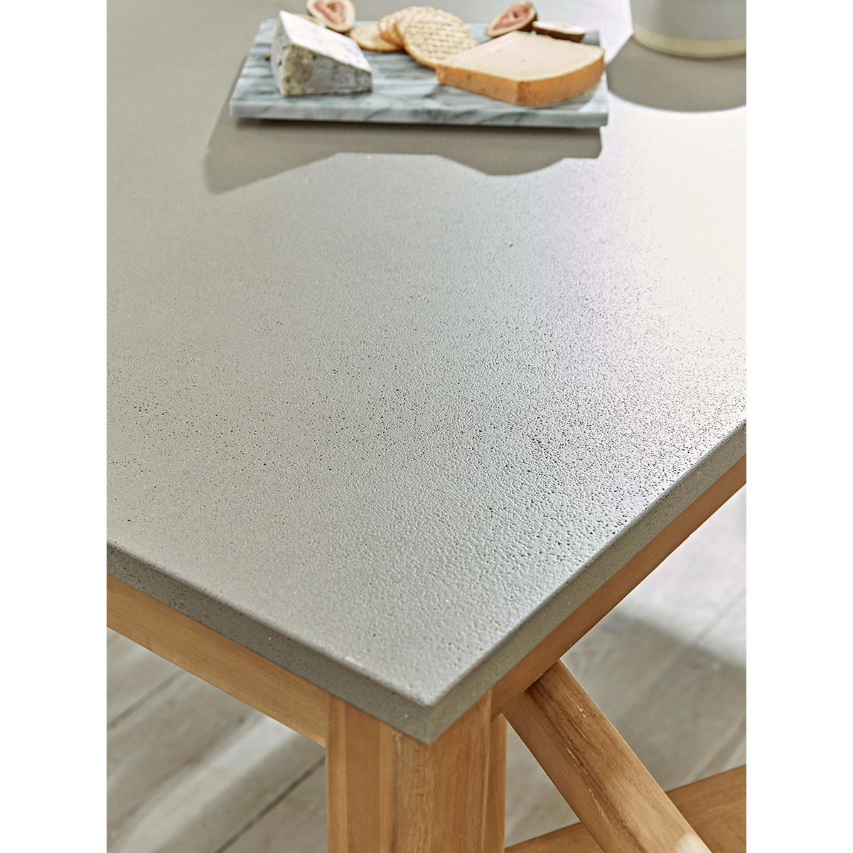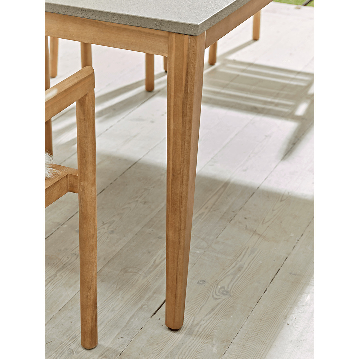 An elegant table, yet one with a contemporary, Scandi look served by its polished concrete effect top and pale, beautifully toned acacia frame. Our Concrete Topped Dining Table crafted from characterful and durable poly-stone, makes for a hard wearing yet stylish piece for any home. A round Concrete Topped Dining Table is also available.