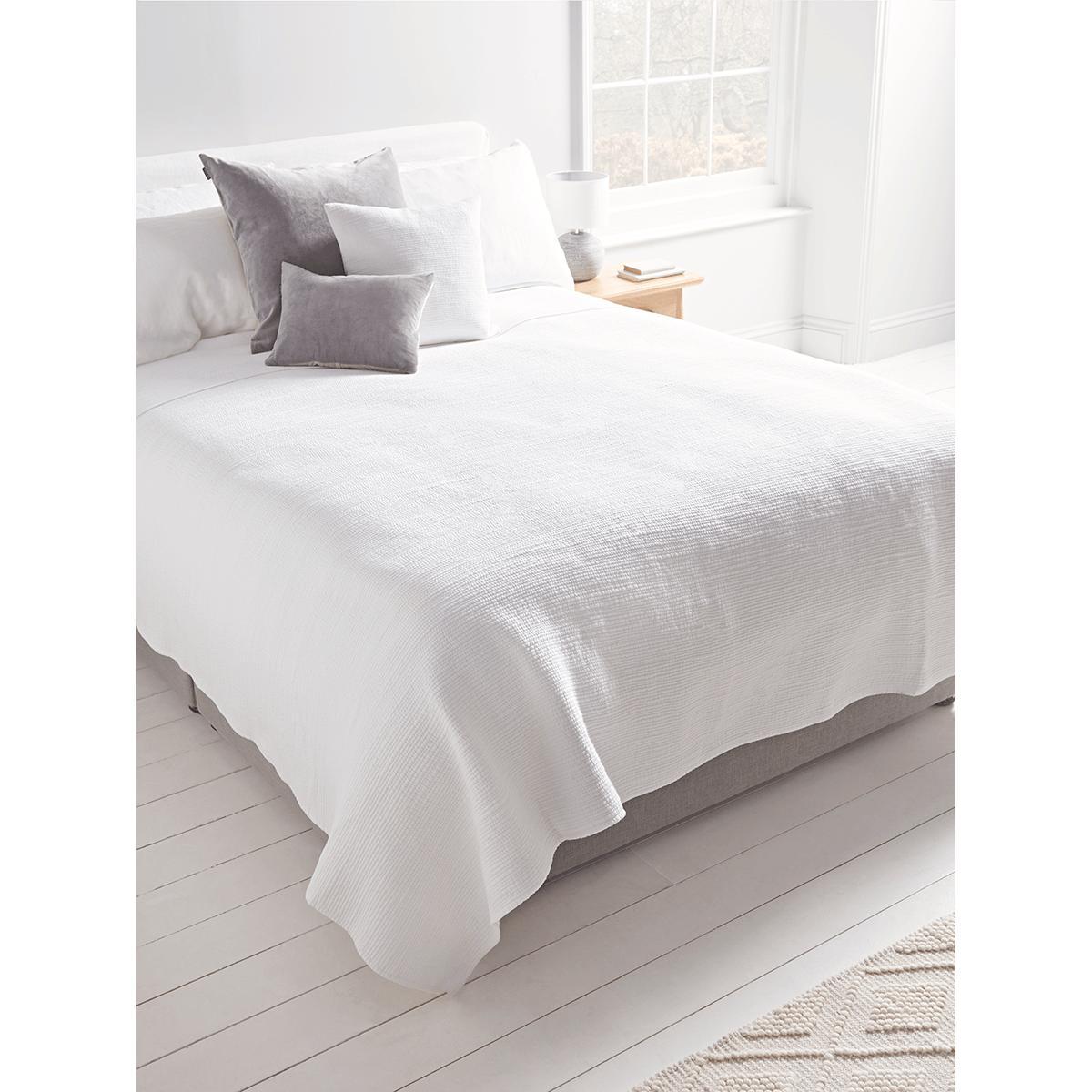 To make the most of your rest time, create a feeling of luxury with soft tactile layers and a well dressed bed. Beautifully crafted from a fresh white cotton, the horizontal quilted finish on this lightweight bedspread makes it the perfect all-year-round layer. A matching white. Cotton Quilted Cushion. Is also available.