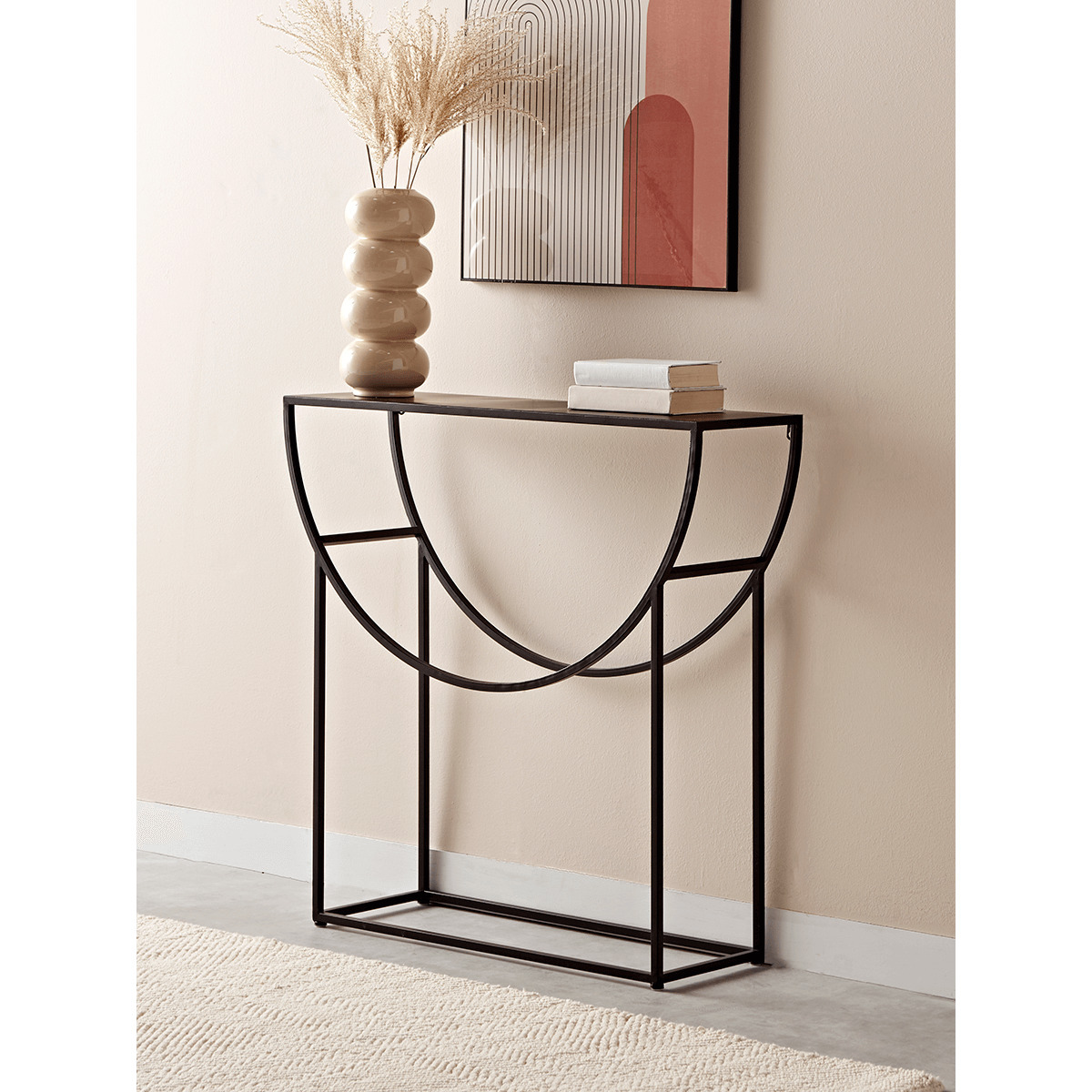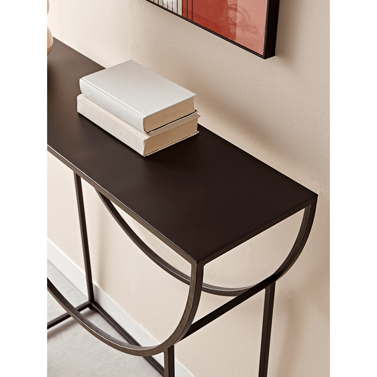 Please accept our apologies, this was a much loved item, and is sold out until next Spring!. Made from iron, the Dade Console Table is beautiful in its slender curved simplicity and by the rich-toned frame and modern abstract design, it will add atmosphere to your home. Complete with security brackets to support the frame, make a statement in the hallway or the living room and style with a feature vase on top, and your favourite books or magazines.