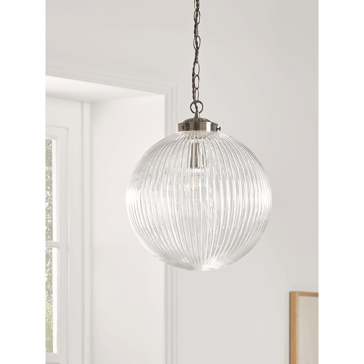 I love this large fluted pendant for its timeless, sculptural appeal. Its clear ribbed glass gives off a subtle, diffused glow that adds a sense of understated elegance without overpowering a space. It works particularly well in contemporary or minimalist interiors, but also pairs beautifully with vintage or industrial themes when combined with complementary finishes. Practical styling tips include hanging it over dining tables or in a kitchen island setup, where its size can be showcased without overwhelming the room. To maximise its impact, consider keeping surrounding decor simple and opting for warm bulbs to enhance the soft, inviting light.