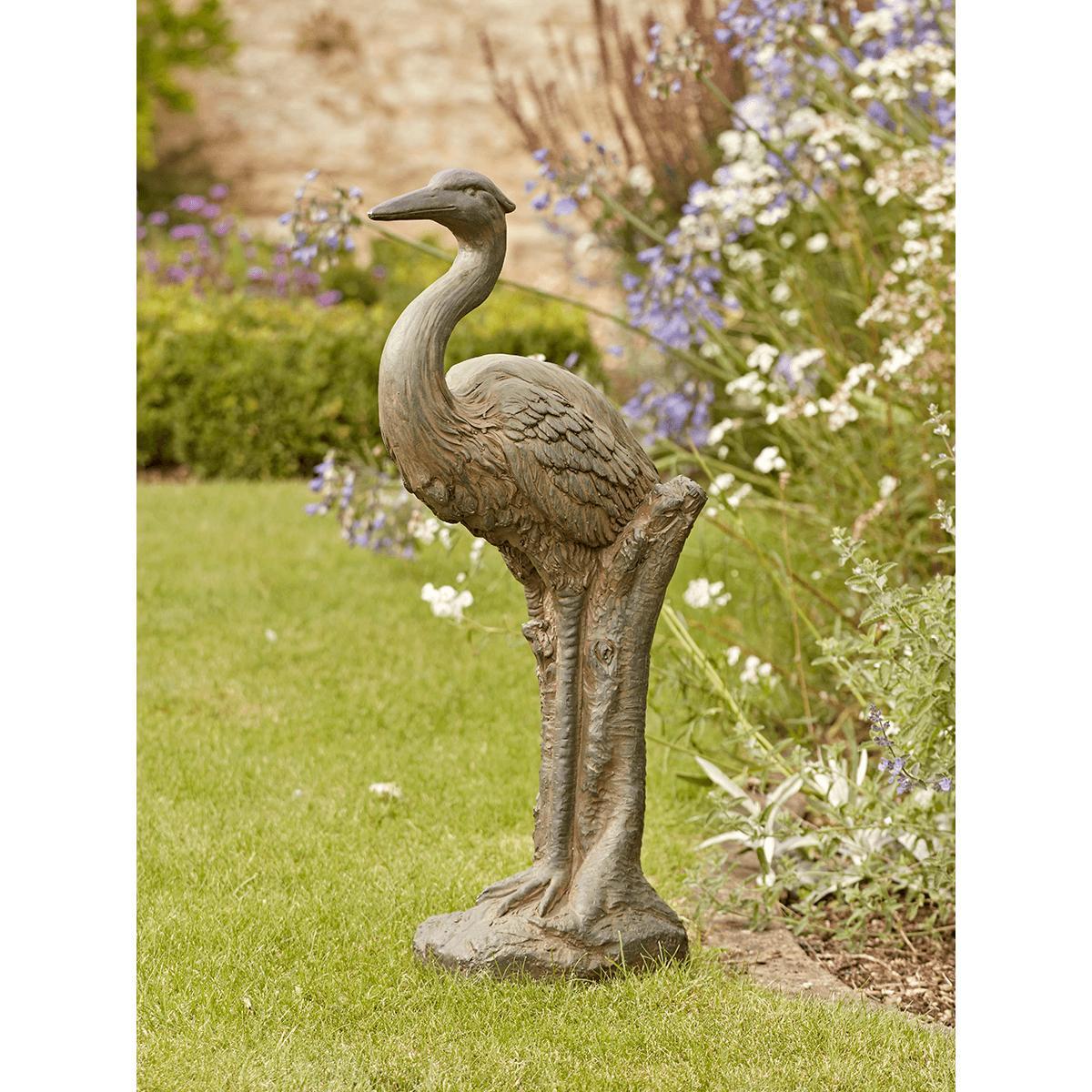 Placed guarding a koi pond from the real thing or standing alone in a herbaceous border, our Heron Sculpture will bring a sense of drama to your outdoor space. Undeniably elegant, he will be sure to cast an eye over all your garden antics. Made from a bronze effect resin, with a slightly aged finish.