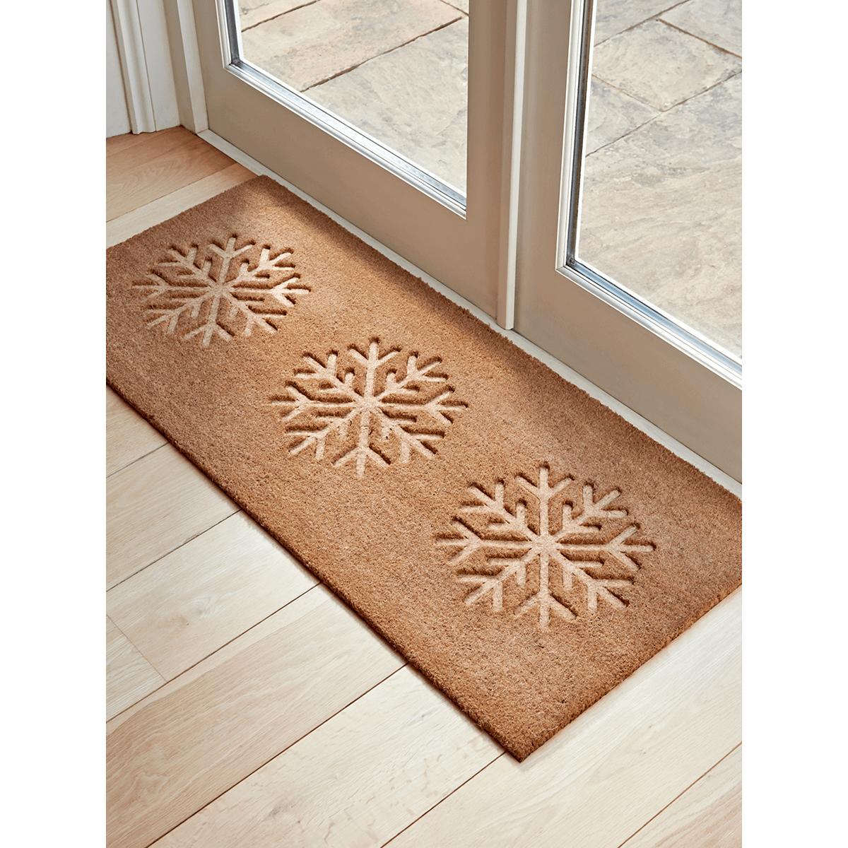 Add a little wintry finesse to your threshold with our Embossed Snowflake Doormat. Made from natural coconut fibres with an anti-slip PVC backing, place this mat in a sheltered area to prevent muddy floors and promote stylish living.