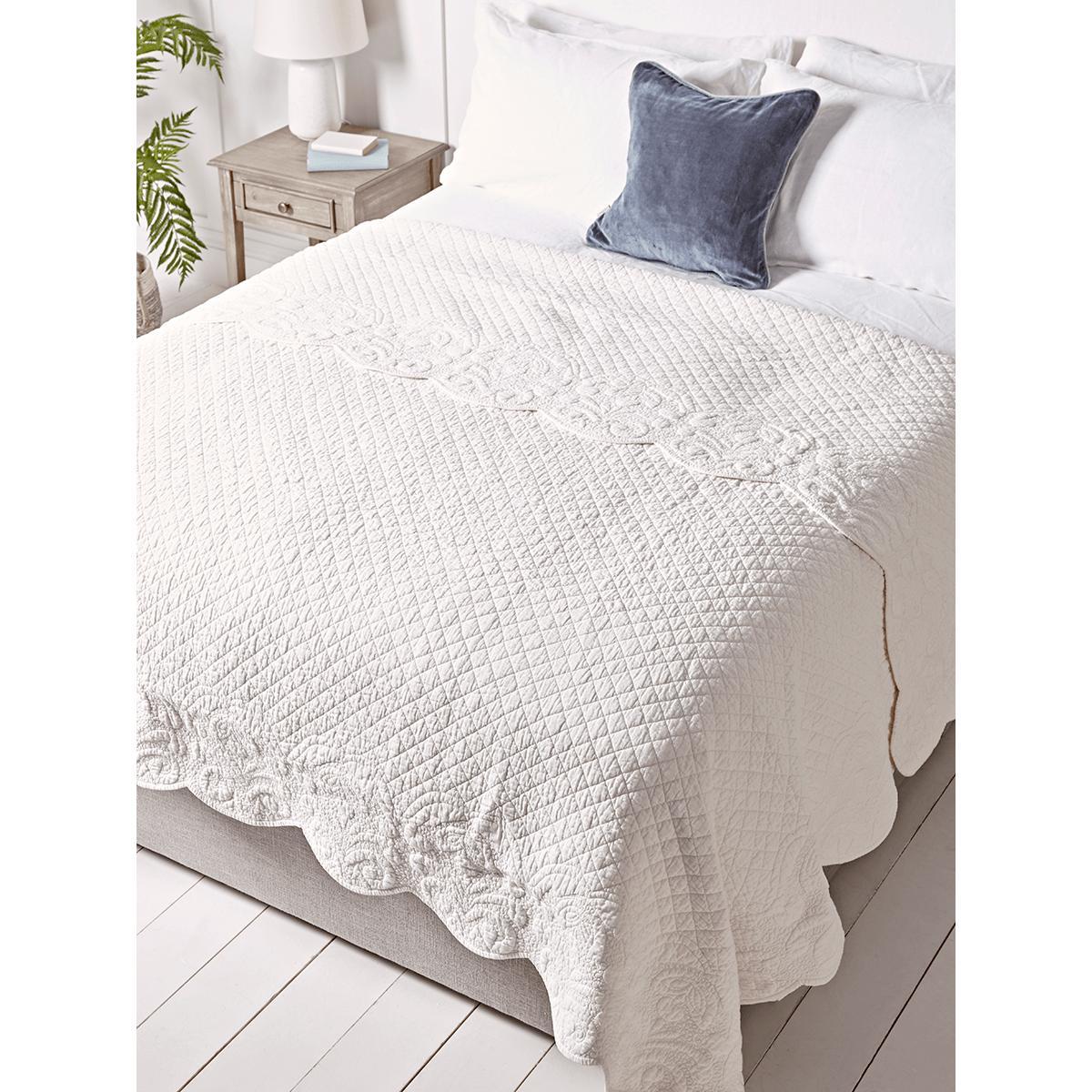 Please accept our apologies, this was a much loved item, and is sold out until next Spring!. Classically elegant in design and with a white cotton cover and filling, our Embroidered Scalloped Bedspread carries a light and airy tone into the bedroom while the quilting brings with it a warm, cosy look. A feel that is essential in all bedroom textiles.
