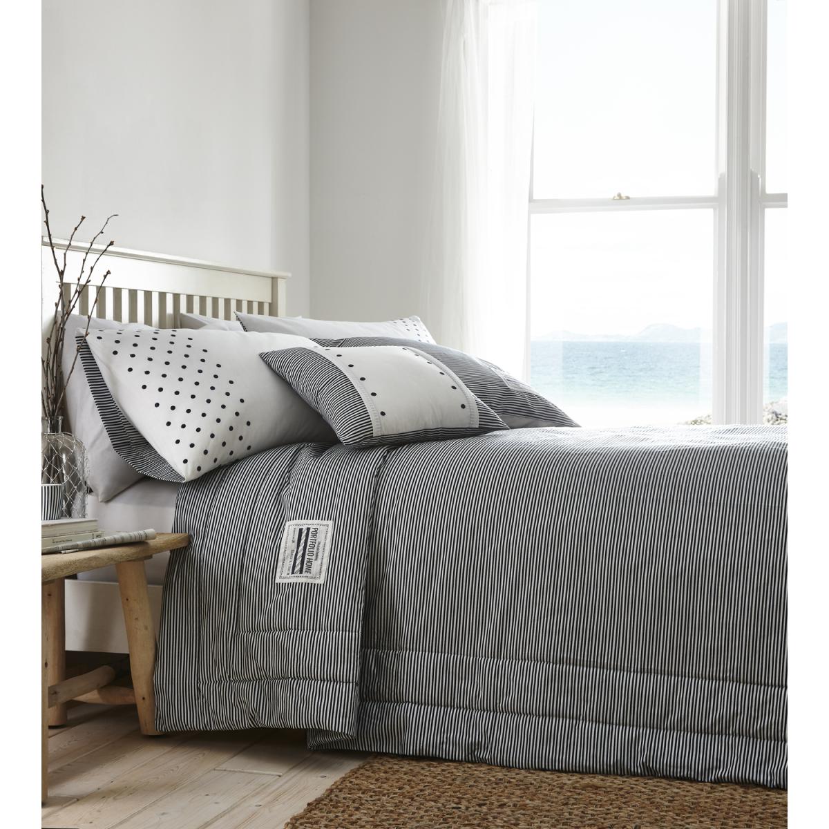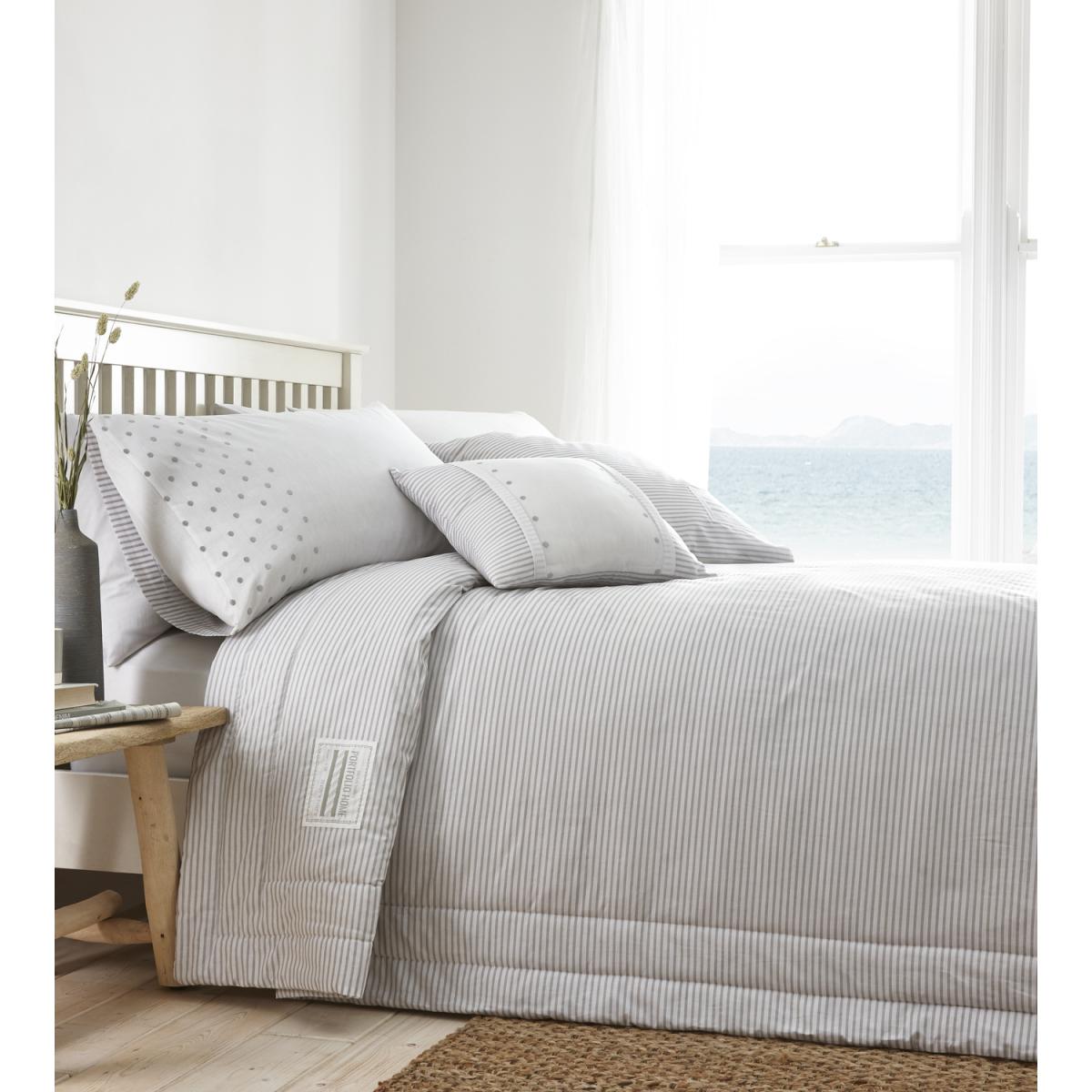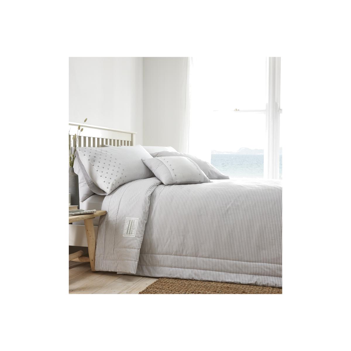 The New England Quilted throw is a lovely, crisply quilted bed throw featuring nautical tones of sharp stripes. This duvet set is available in striking and traditionally nautical shades of navy and white, or a more calming grey and white. Layering this plush set up with extra-large cushions will complete the sense of comfort, making it even harder to leave your bed.