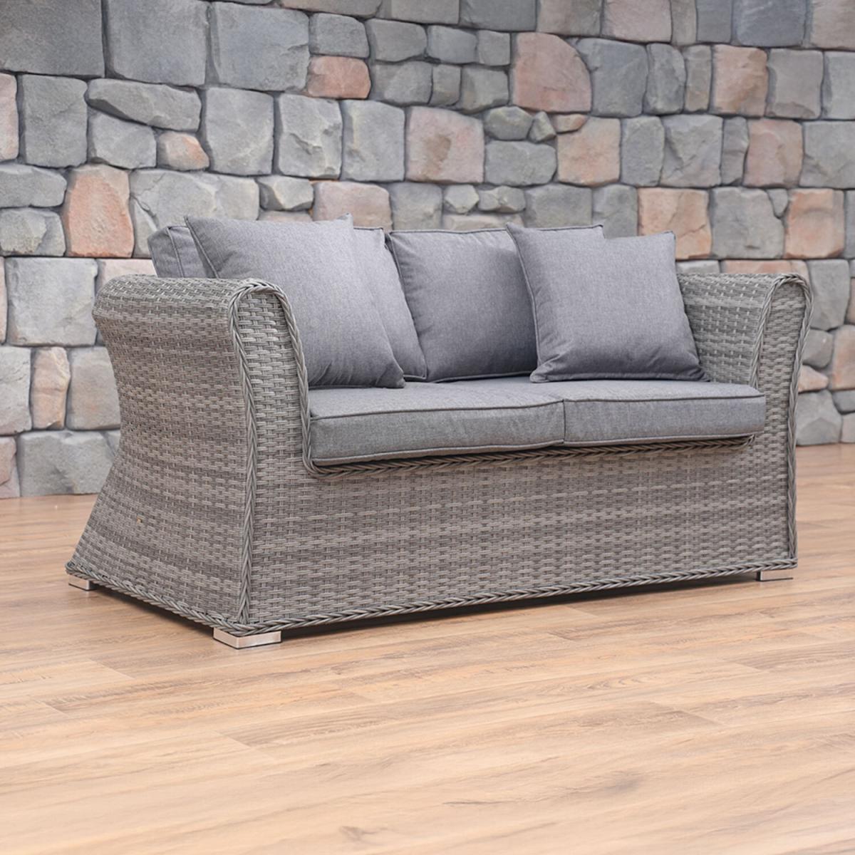 Infuse your outdoors with comfort and style using this New England Sofa. Sturdy and functional, this sofa features a lightweight aluminium frame and stylish synthetic rattan mixed finish to protect against harmful UV rays. Ideal for relaxing in your gardens, it comes with thick, soft and inviting cushions for extra comfort. Moreover, the included furniture cover ensures that the sofa stays protected from rain or dust when not in use. New England Sofa - Grey / 2