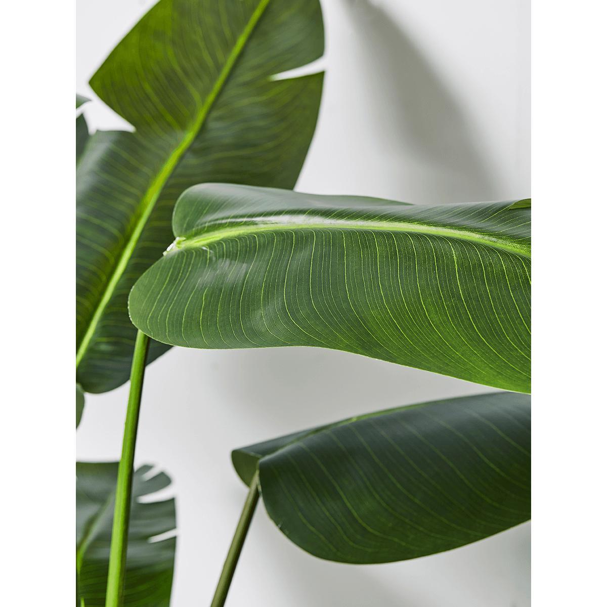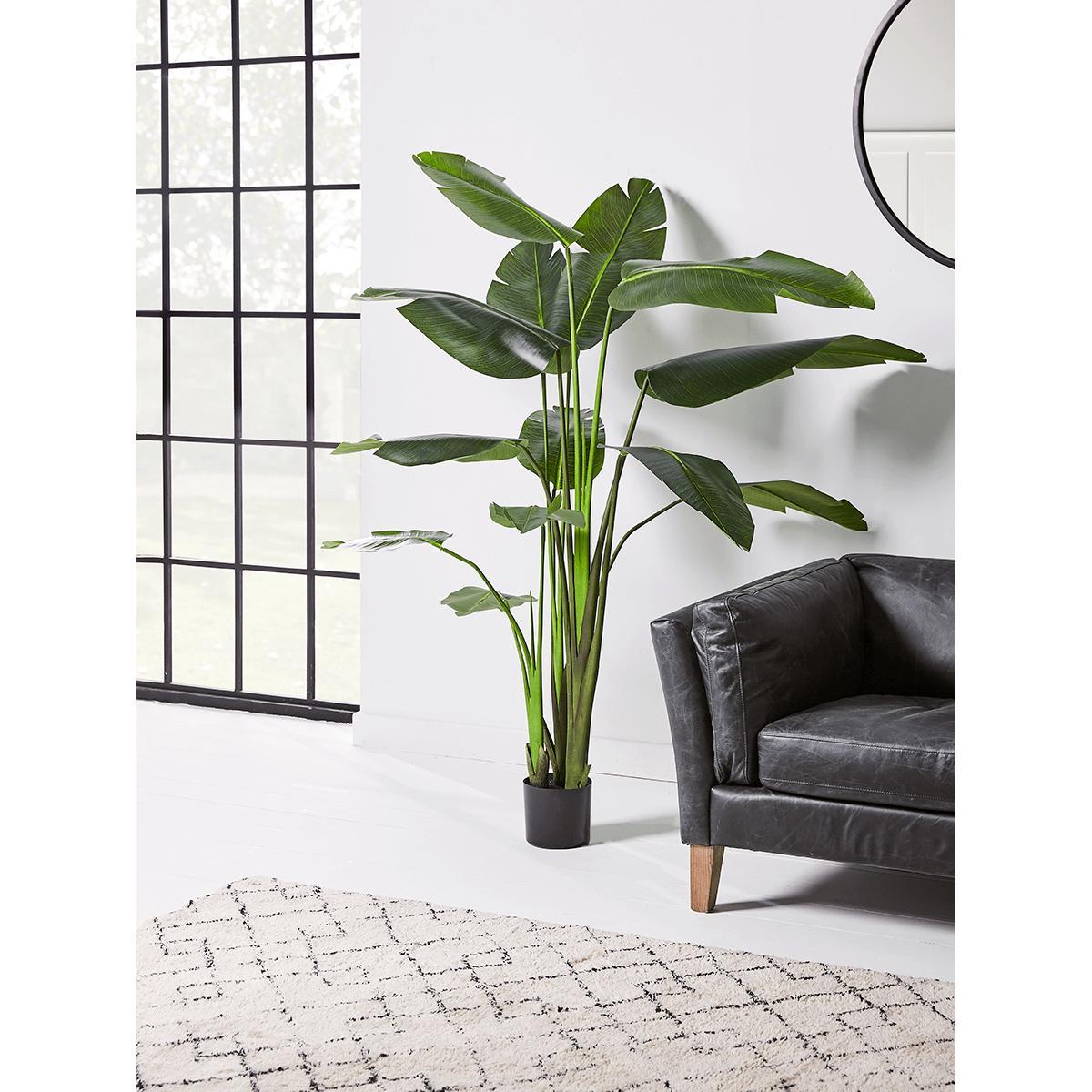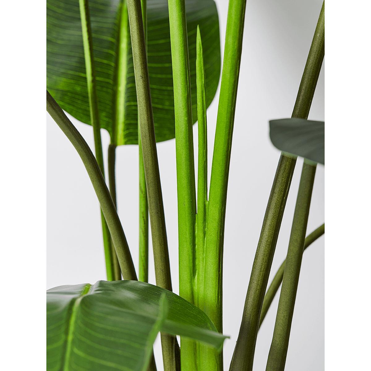 Our Faux Potted Banana Plant will create an on-trend, leafy statement in your space while adding colour and movement to it. With its characteristic rich green leaves, each captured with detailed realism, this fabulous faux plant has all the freshness of real greenery, but without the upkeep - ideal. Our Banana Plant is presented in a small black pot - don’t forget to pair with a complementing decorative. Planter. To really elevate its style.