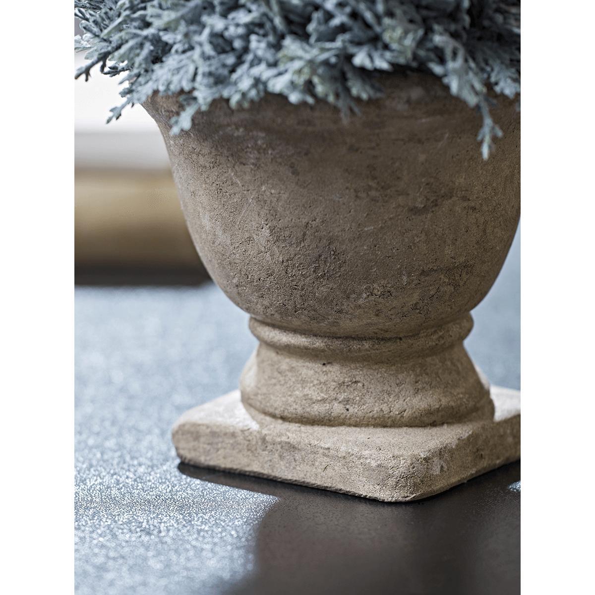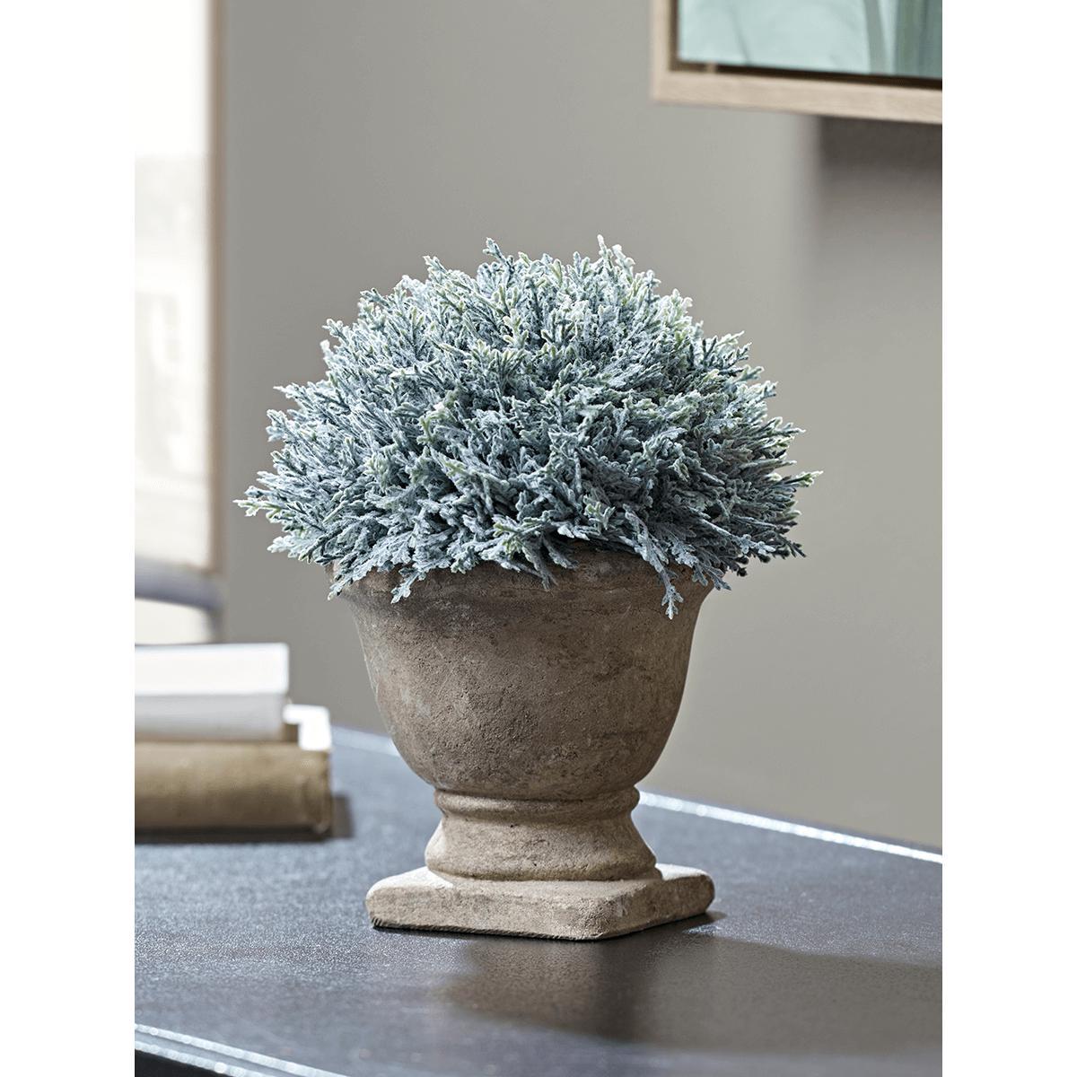 Presented in a raw cement effect pot that contrasts pleasingly with the plant’s pastel shades of green-grey, our Faux Potted Evergreen is barely distinguishable from the real thing. Display on a. Console table. Or a. Book shelf. And enjoy how easily your home is brightened without the need for sunlight or watering.