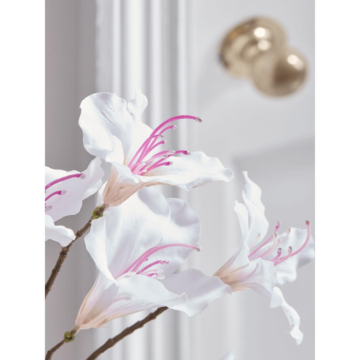 Enjoy the short-lived spring beauty of the rhododendron flower in every season with our delightful faux spray. Authentic looking branches are festooned with blooms in softest blush with contrasting stamens in a hot shade of fuchsia. This spray will look show stopping on its own in a fabulous. Vase. , or add a pretty pop of colour to a larger display of faux flowers. Discover our wide range of. Faux flowers and plants.