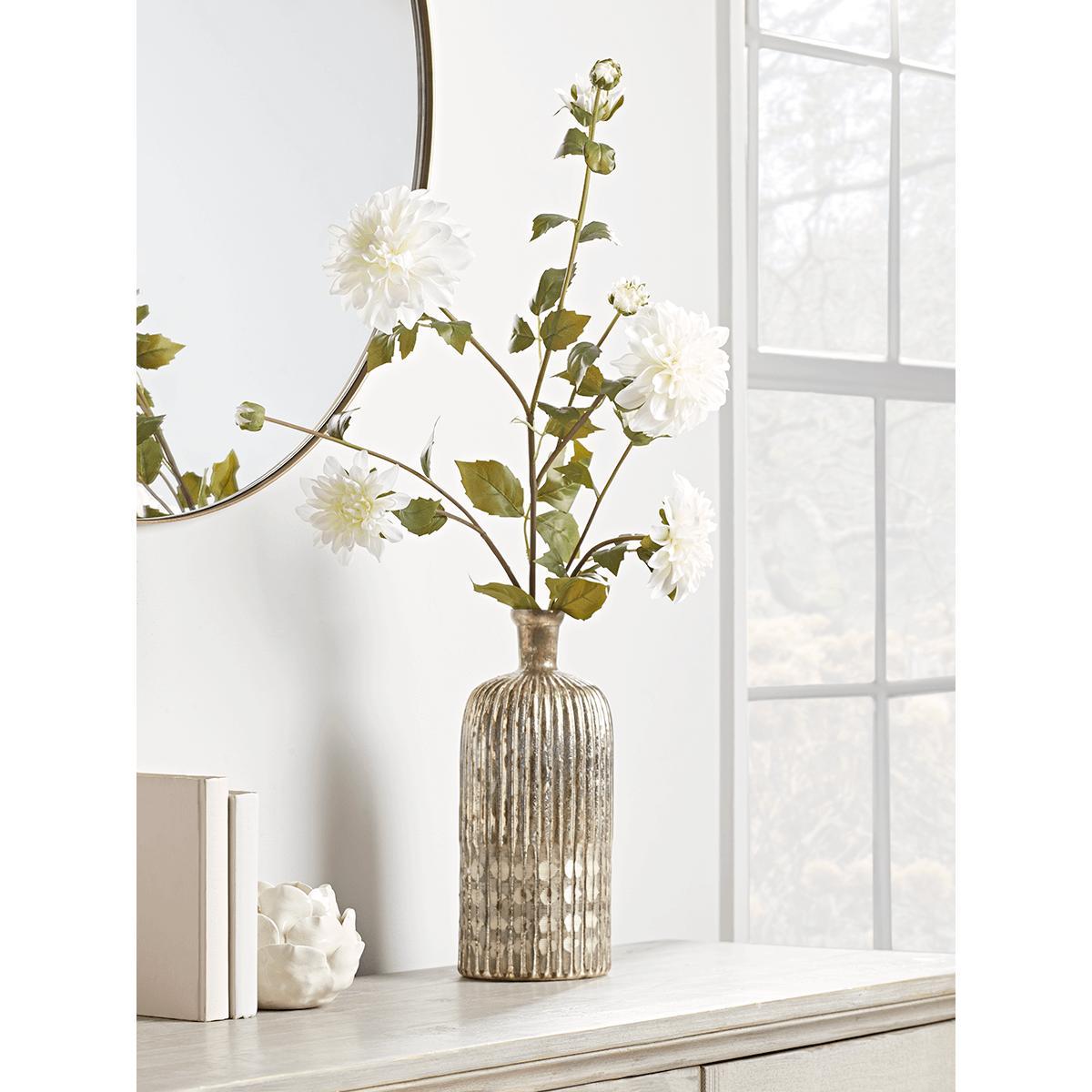 The perfect accent for a vintage style interior, each stem of our Faux White Dahlia Spray features realistic green leaves, a opening bud or a full flower with realistic variegated petals. A lively display which can be accented with other stems from our.