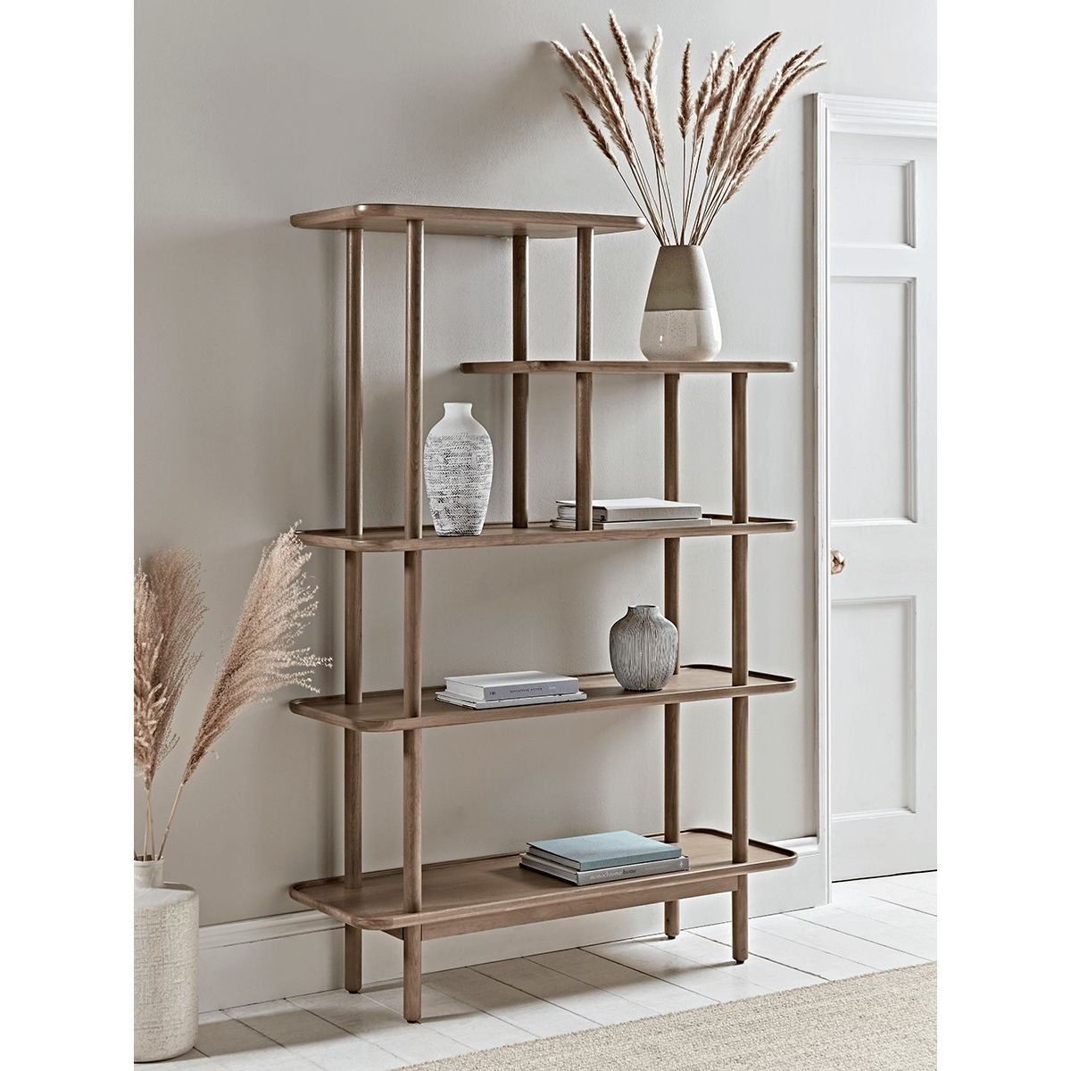 Our Scandinavian inspired Fjord Oak Display Shelf has the power to transform a space to one that is better looking, and better functioning. Here, such is the Scandinavian way, form marries function for a look that is both uncomplicated and design led. Crafted from oak with a greywash effect and flawlessly finished, our versatile little display shelf has three deep wide shelves, and two upper shelves of varying heights. Featuring a subtle wood grain and tactile, smooth edges, position to any contemporary space for a place to position your books, plants and decorative pieces.
