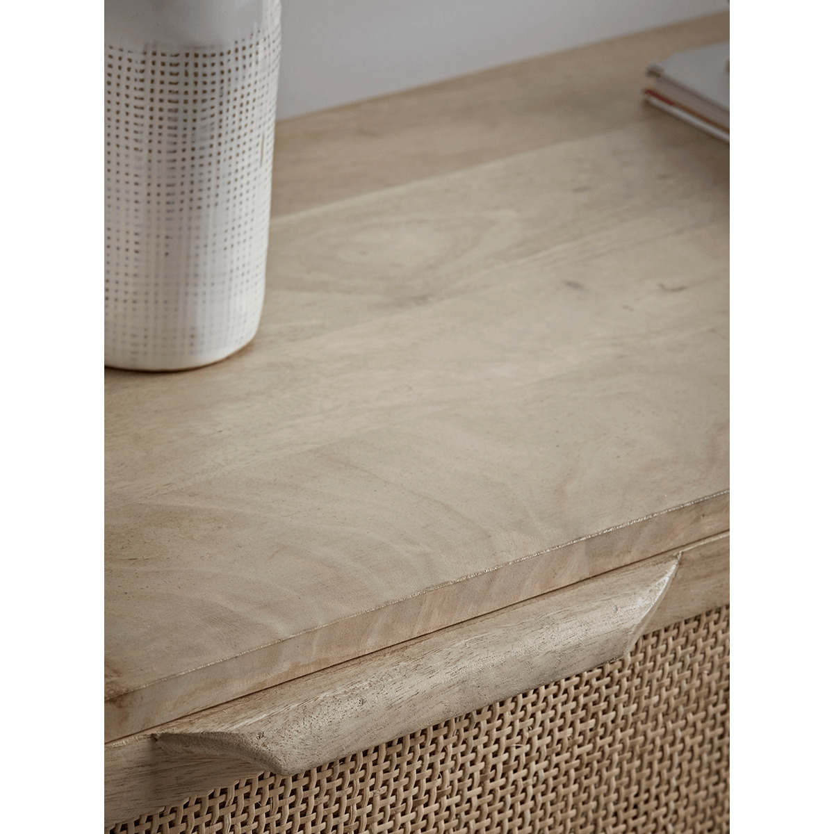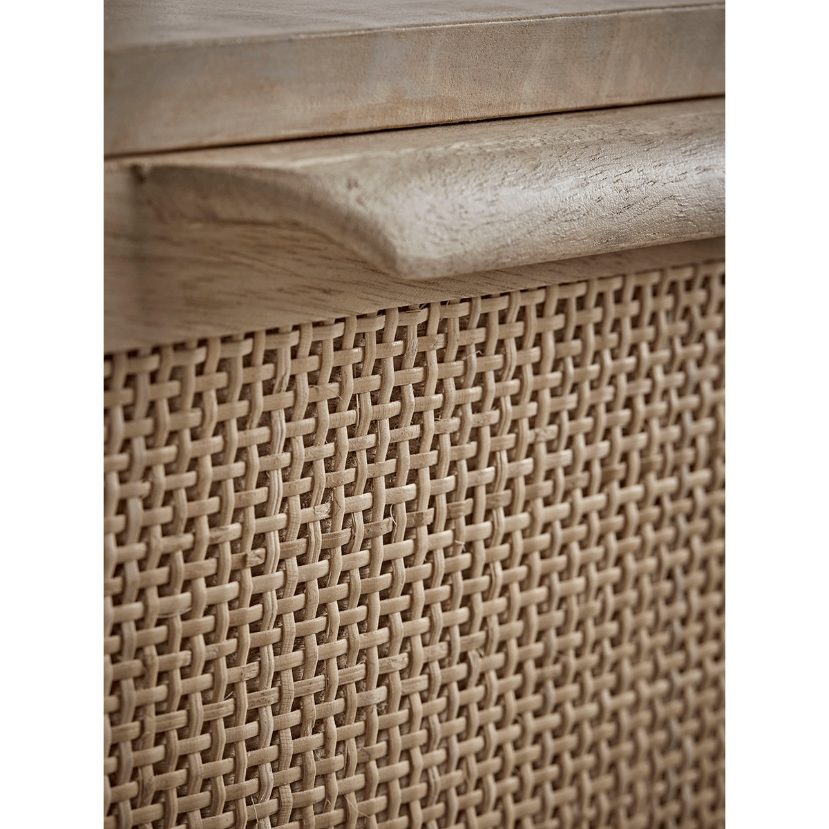 I love this flat rattan webbing console because of its subtle blend of natural textures and its versatile aesthetic. It works particularly well in Scandinavian or boho interiors, where light, woven elements add warmth and softness. Practical styling tips include layering with a few curated accessories like ceramics or framed artwork on top, and pairing it with plants to create an inviting, lived-in vibe. Its slim profile also makes it ideal for narrow hallways or behind sofas, providing function without overwhelming the space. The rattan detail ensures it remains relaxed yet refined-perfect for adding a touch of organic charm.