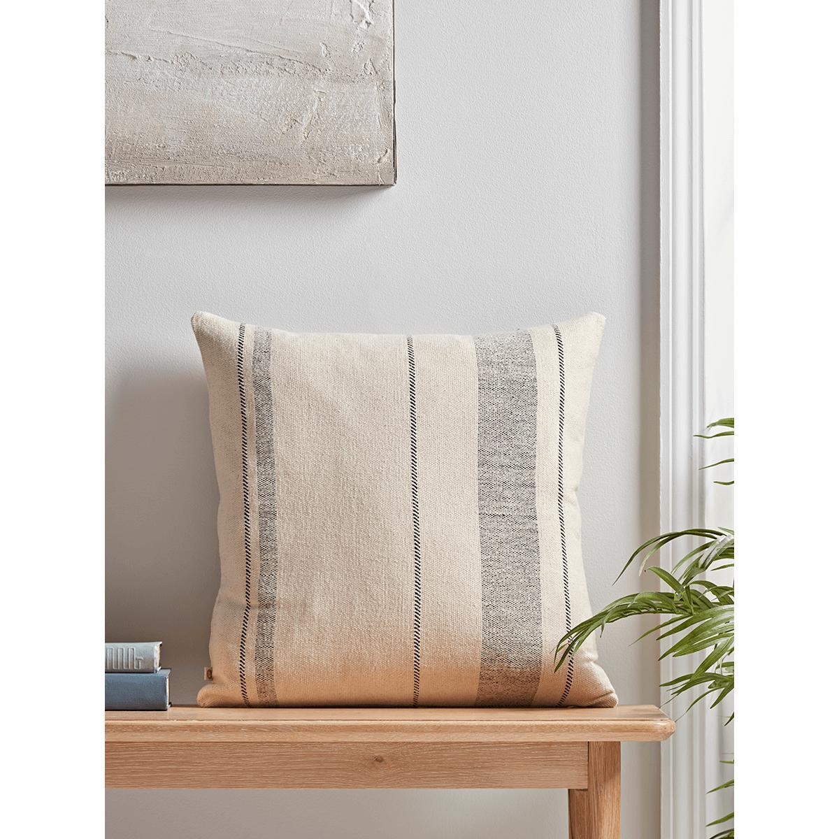 A light toned cushion that will sit comfortably in most room schemes to refresh your space and deliver a relaxed, bohemian edge. The cotton weave of the cover brings a gentle surface texture with character stripes in contrast tones, while the duck feather filling is plump and perfect for snuggling up with on the sofa.