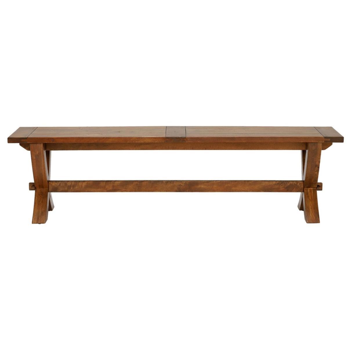 Design. This rustic crossed leg bench from the New Frontier range has been crafted from sustainable mango wood with a Albanya Rustic Medium finish, offering extra durability and mellow tones. Its distressed finish offers a stylish and contemporary feel while boasting a practical and spacious seating arrangement; this is the perfect addition to your family dining space and great for times with extra guests. This item is part of the Trees 4 Trees project. Read more here.