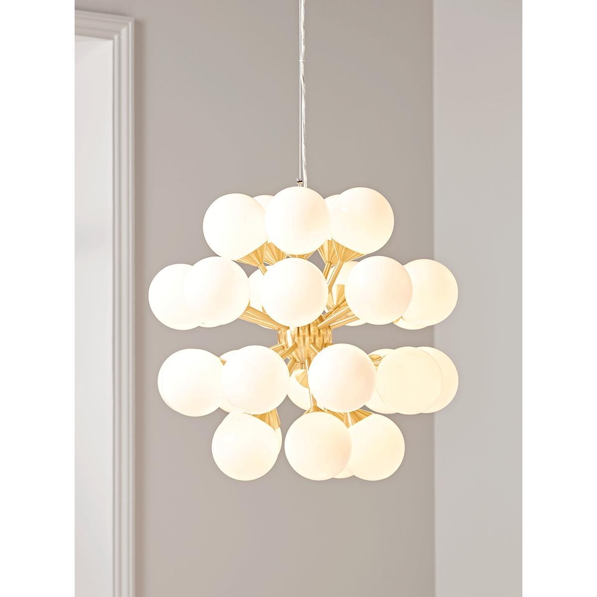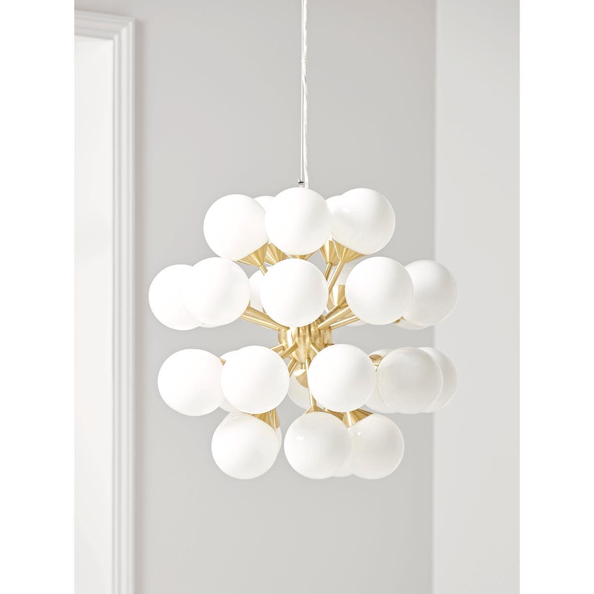 Bathe your living space in a warm glow with our utterly fabulous Frosted Globe Cluster Pendant. Comprising twenty-eight spheres atop bright gold arms to form a beautiful ball of light, this piece is ideal for adding to an interior with a soft spot for luxurious deco style. Discover how to create the perfect lighting scheme for your home using our. Lighting Buying Guide.