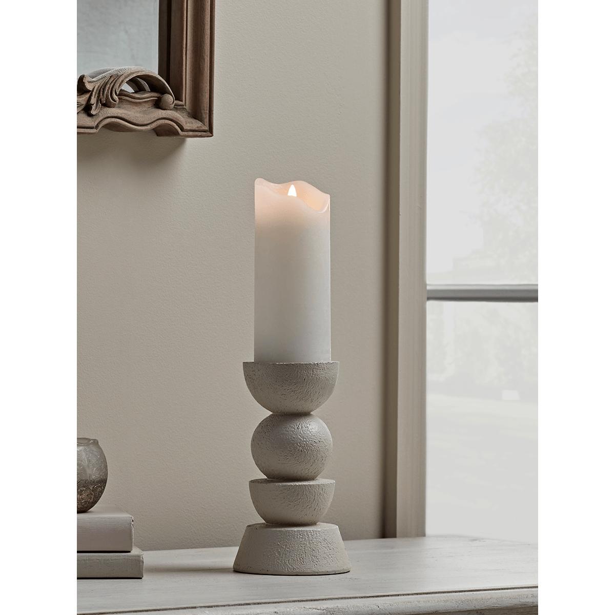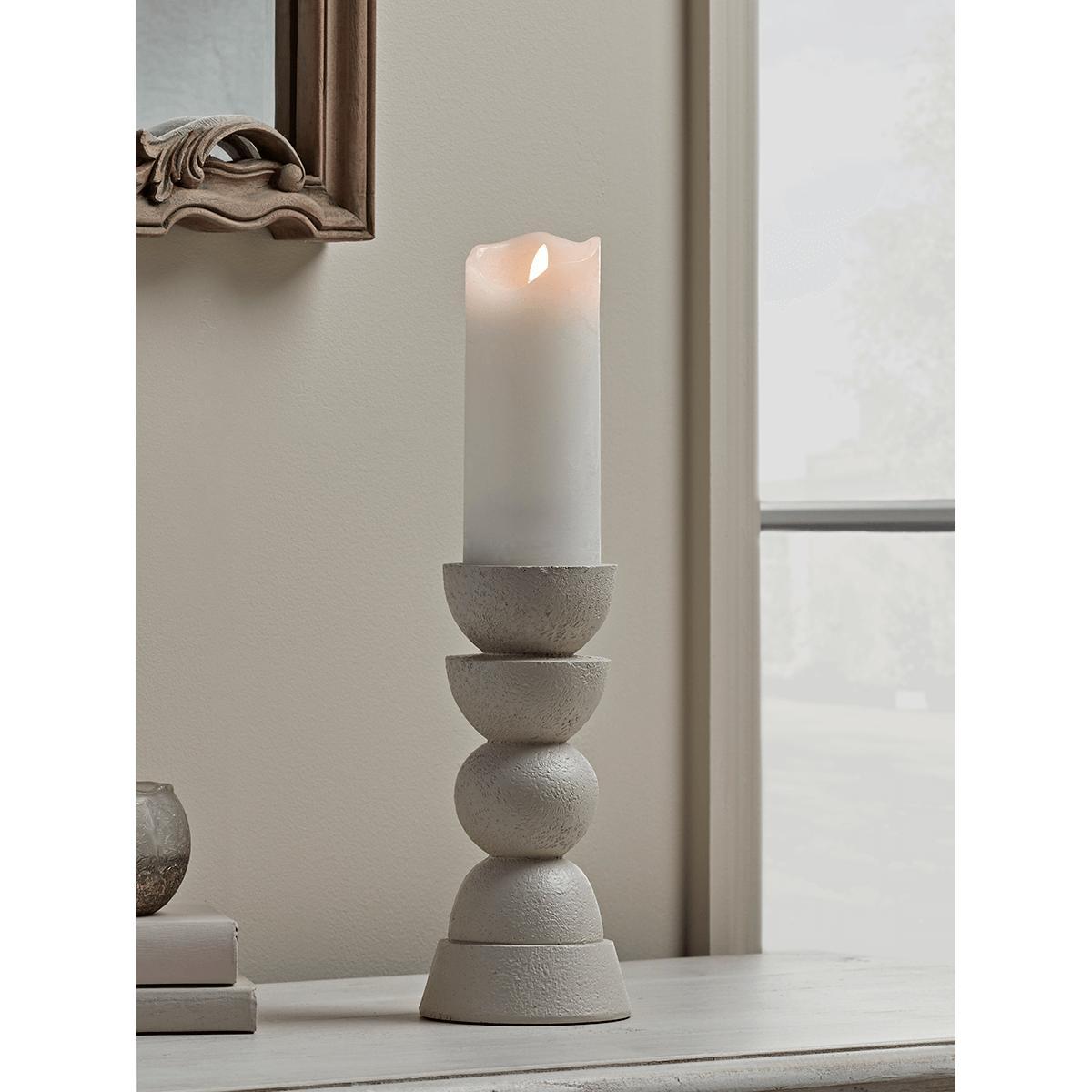 I love this large geometric candle holder for its modern yet timeless appeal. Its sculptural design makes it a versatile statement piece suited to minimalist, contemporary, or even industrial interiors. It works particularly well placed on mantels, sideboards, or coffee tables to add height and visual interest. Practical styling tips include pairing it with simple, monochrome candles to highlight its shape or creating a curated display with smaller accessories like books and foliage for a layered look. The sizeable scale ensures it remains a focal point, making it perfect for larger rooms or open-plan spaces where you want to make a subtle but impactful decor statement.