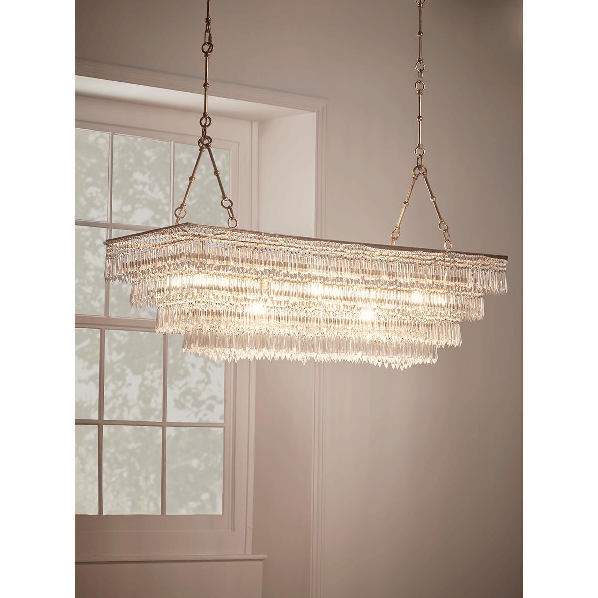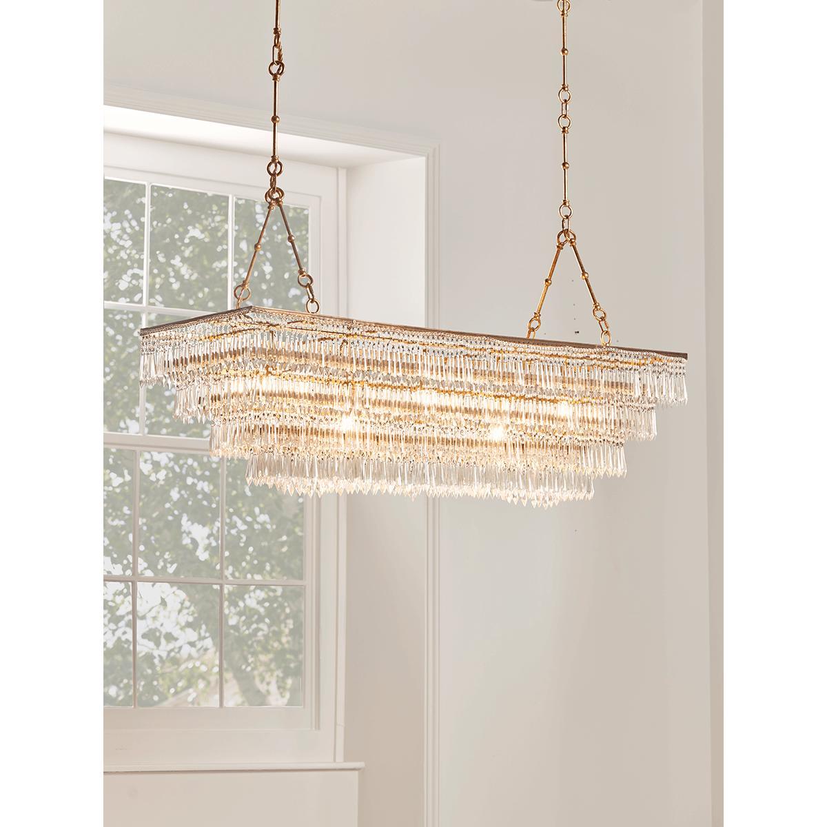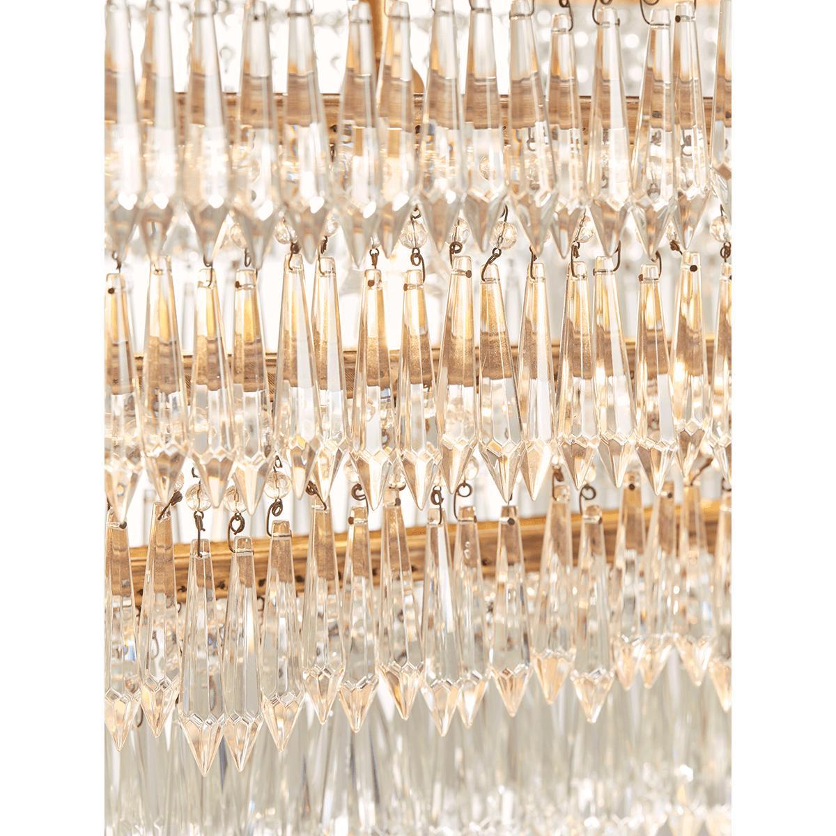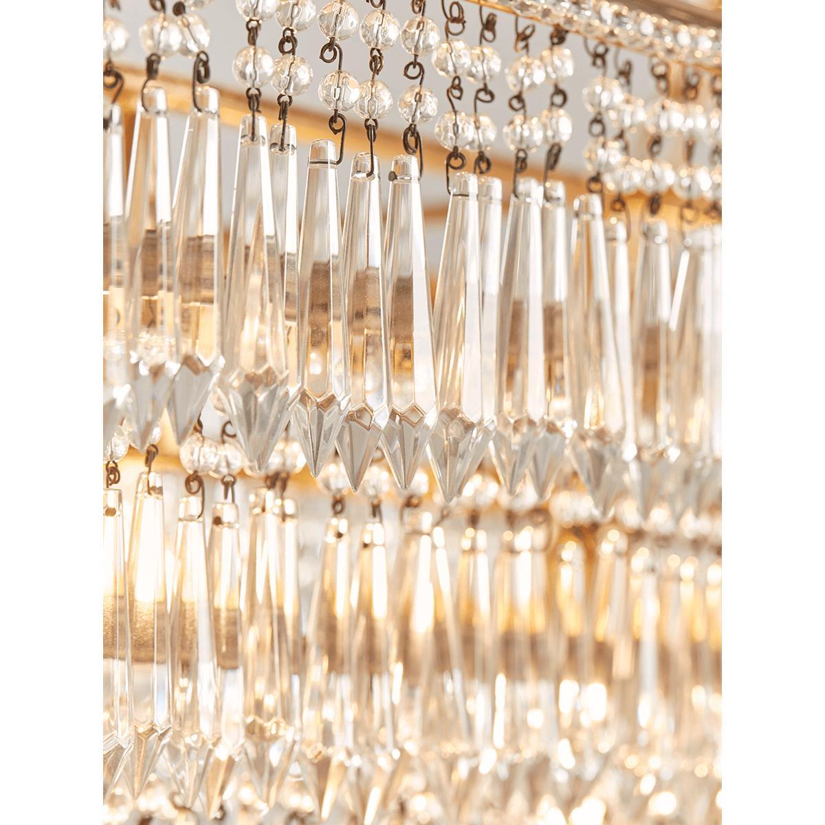 Be unapologetically fabulous in your lighting choices with our Grand Tiered Droplets Chandelier and enjoy the pleasing contrast created between the burnished golden frame and twinkling glass jewels dripping from it. Try hanging this piece in an entrance hall for an immediate statement, or above a long dining table for a dazzling dinner party that will make your whole room feel as though it is sparkling. Discover how to create the perfect lighting scheme for your home using our. Lighting Buying Guide.