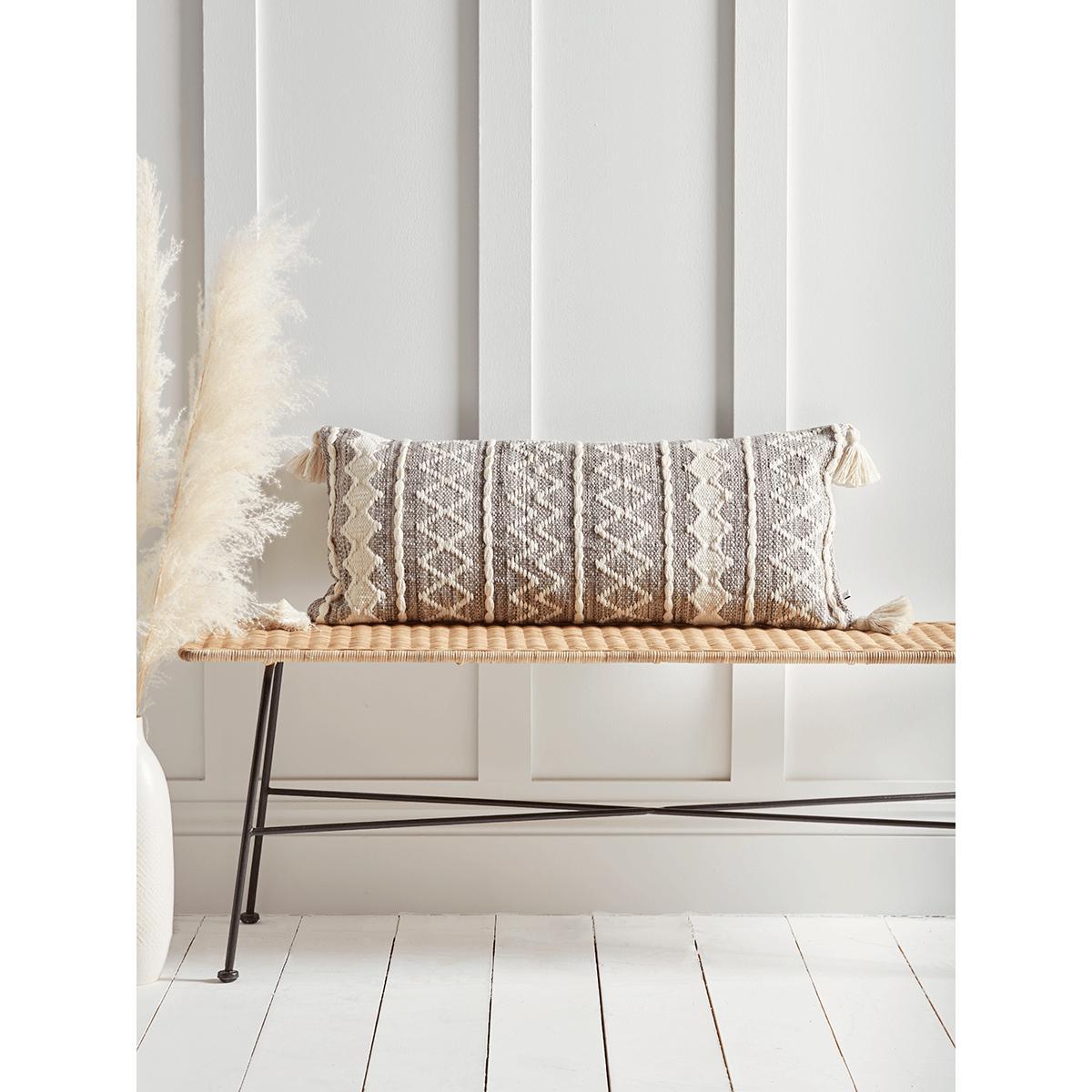 I love the grey chevron tasselled cushion for adding texture and a subtle pattern to a neutral or layered colour scheme. Its versatile grey tones make it suitable for both contemporary and Scandi-inspired interiors. The tasselled edges add a relaxed, tactile element, perfect for styling on a sofa or armchair. For practical tips, pair it with plain cushions in complementary hues to keep the look balanced, or mix with patterned textiles for a more eclectic feel. It works particularly well in living rooms with linen or woven fabrics, or even as a decorative accent on a bed in a cosy, neutral bedroom.
