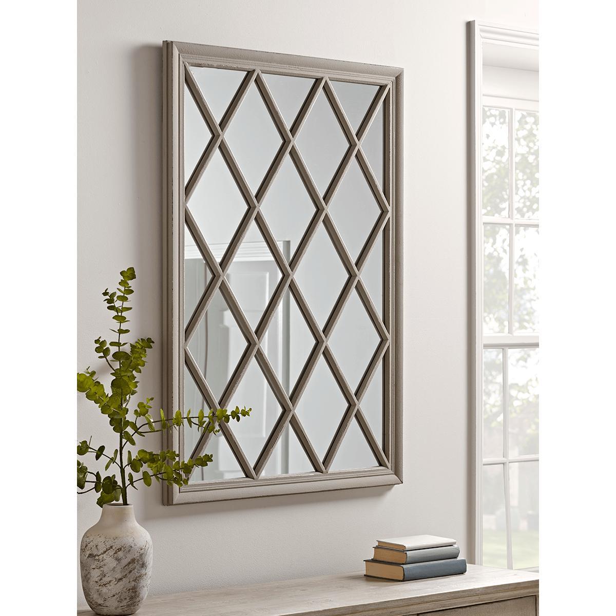 I really like the grey trellis window mirror because it adds a subtle texture and a hint of pattern without overwhelming the space. It works particularly well in neutral or minimalist interiors, where it can serve as a statement piece that brings in visual interest. Practical styling tips include placing it on a wall where it can reflect natural light to make a room feel brighter and more spacious. It also pairs nicely with other natural materials like wood or linen, making it ideal for country-style or contemporary interiors looking to blend elegance with a relaxed vibe.