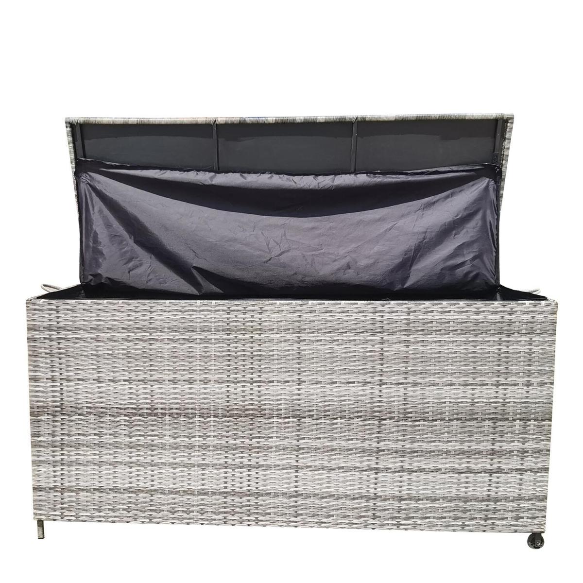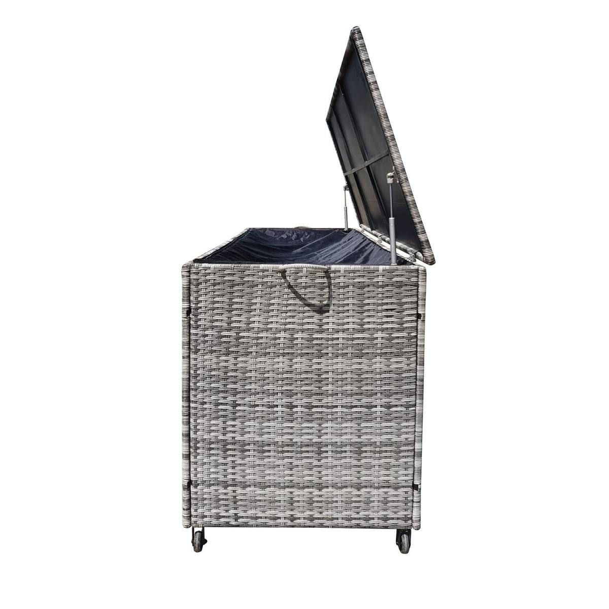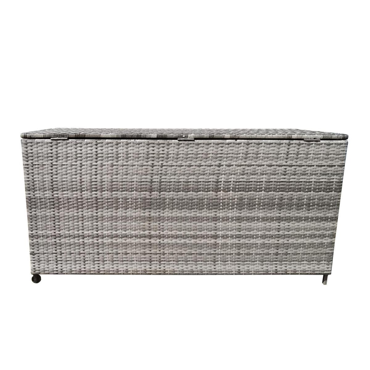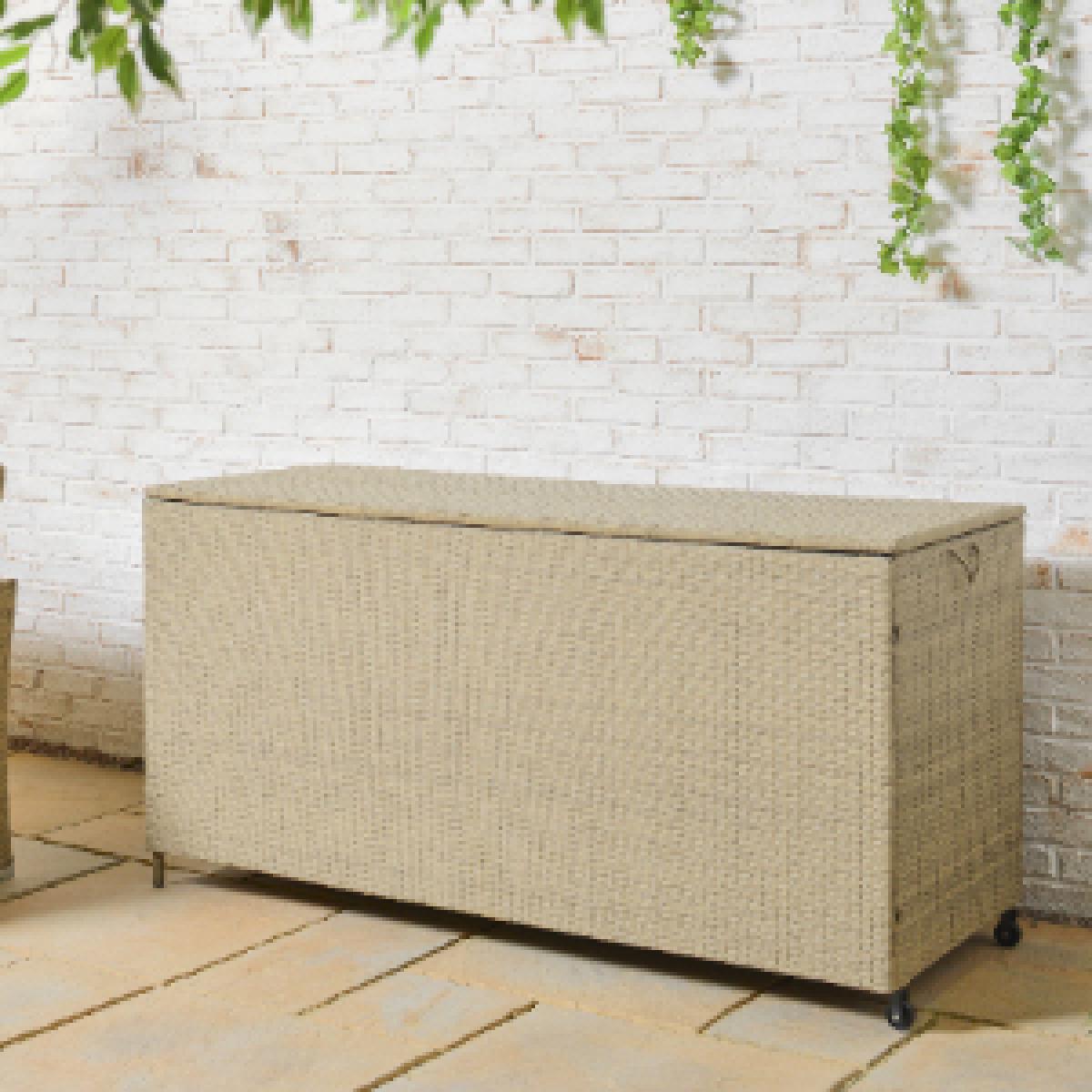 The perfect place to store your garden furniture cushions, this New Hampshire Cushion Box is the ideal accessory for your patio set. A beautiful, sleek design, this amazing rattan style box features rolling wheels so you can transport it around your garden easily and has plenty of space inside to pack away cushions and other items, ready for storage when not in use. Easy to open and close, this is sure to be a great addition to your garden and perfectly complements the New Hamsphire Corner Dining Set.