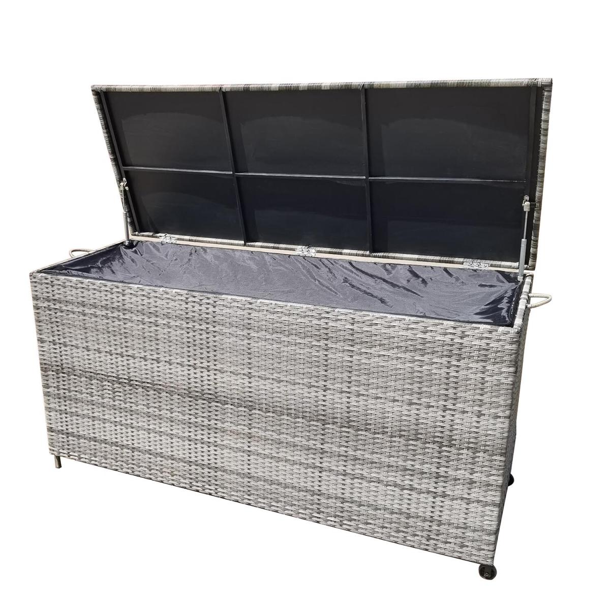 I love this grey cushion box for its versatility and understated style. It's perfect for outdoor or conservatory spaces, adding a touch of practicality without sacrificing aesthetics. The neutral grey tone makes it easy to incorporate into a variety of colour palettes, from coastal to modern interiors. Practical styling tips include using it as additional seating or stacking soft throws and cushions inside to keep them tidy. Its woven texture adds subtle visual interest, making it a great accessory for casual, laid-back schemes, but it can also work well in more polished, contemporary settings when paired with sleek furniture.