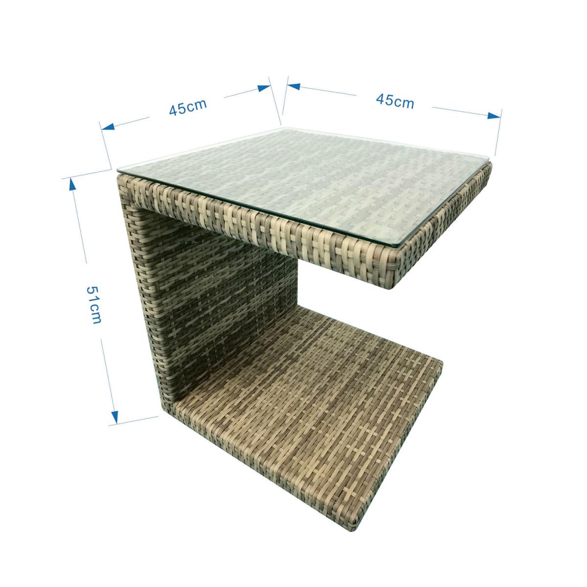 Whether you need to add some extra table space to your patio dining set, or just want a small singular table to pop your coffee on during sunny lunches, the New Hampshire Side Table is a perfect choice. Featuring a stylish tempered glass top, this table is built with a rust-proof aluminium frame and UV-resistant synthetic rattan.