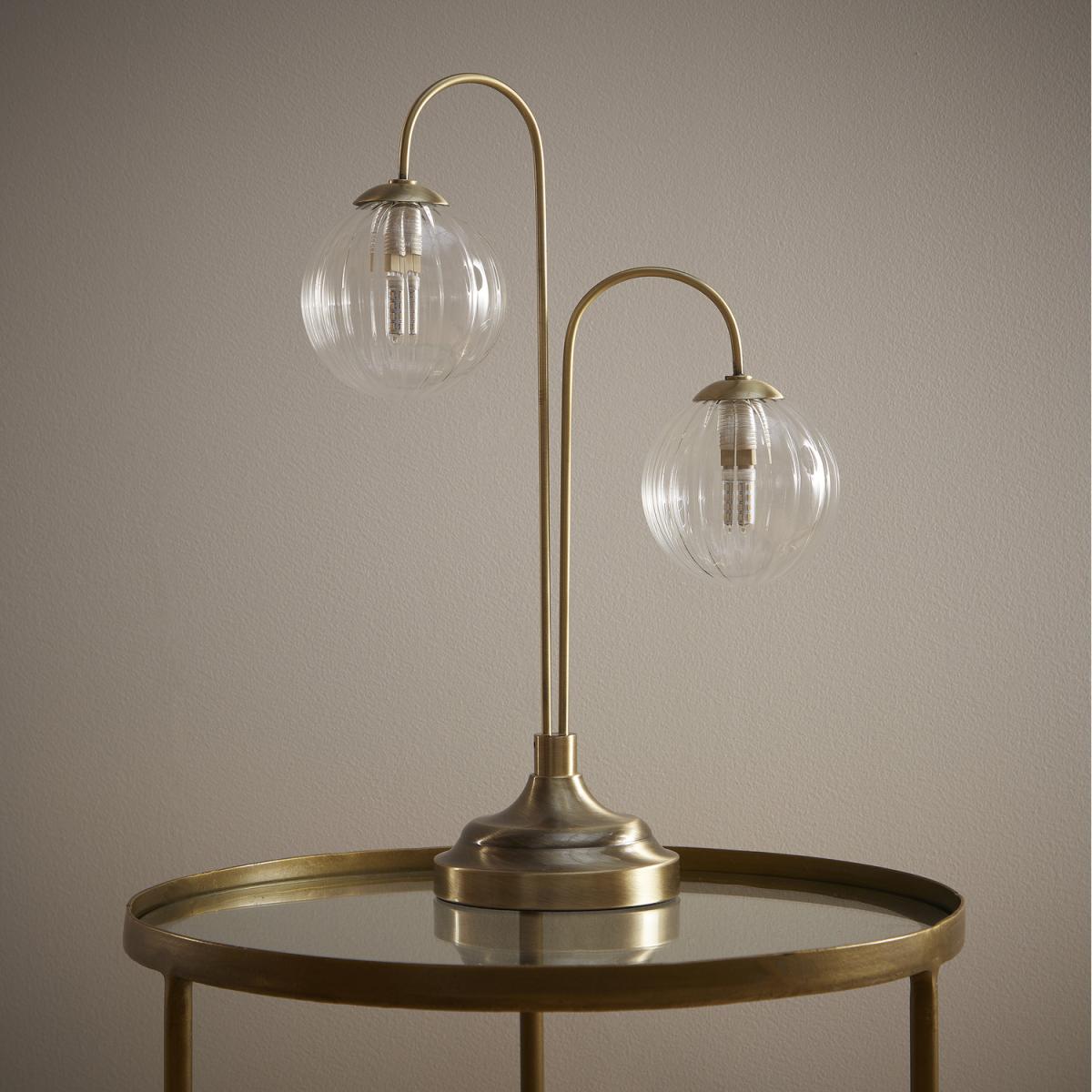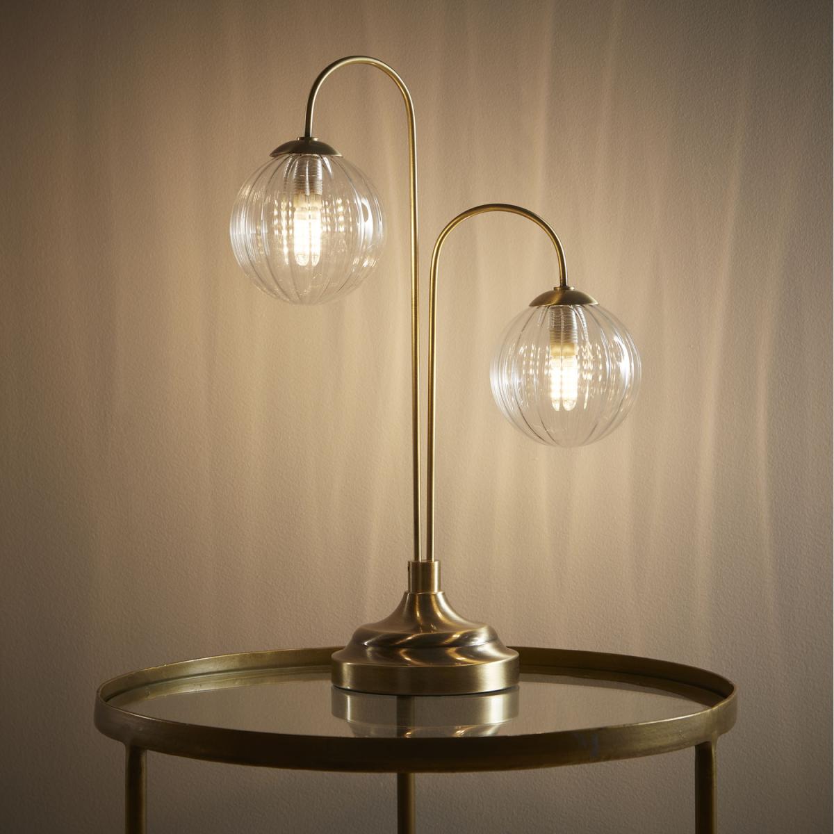 I love how this lamp adds a touch of vintage charm with its antique brass finish and glass globe shades. It works particularly well in interiors that blend classic and contemporary styles, like mid-century modern or eclectic spaces. For styling tips, consider placing it on a side table or console in a living room or bedroom to create a cosy, inviting ambiance. Pair it with other brass accents or glass accessories for a cohesive look, or use it as a statement piece in minimalist settings to add warmth. Its dual-globe design is versatile enough to complement both soft, warm colour schemes and more neutral palettes.