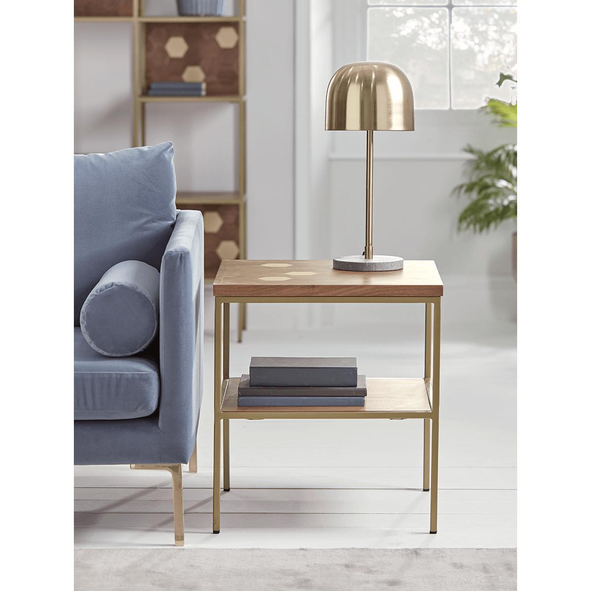I love this side table for its subtle blend of practicality and style, with the brass inlay adding a refined touch without overpowering the design. It works particularly well in contemporary or minimalist interiors, where its clean lines and understated elegance can shine. Practical styling tip: use it as a bedside table or next to a sofa, layering with a decorative tray or a small vase to add personality. Its lightweight frame makes it versatile and easy to move around, making it a great option for both function and aesthetics in cozy living spaces or modern bedrooms.