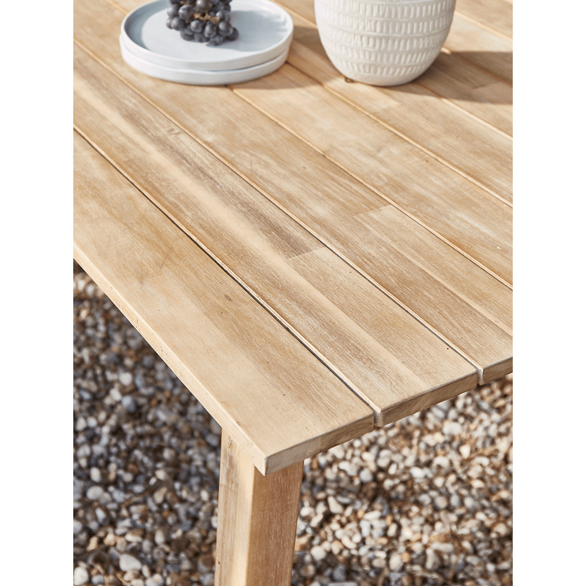 Capturing the pared back simplicity distinctive of Nordic style, our Acacia Dining Table is crafted only from treated pale toned acacia wood, a variety that is beautiful in tone yet very hard wearing and perfectly suitable for indoor and outdoor use. Function and form here present a wonderful dining table, wherever you might place it - set our complementing chairs, (also suitable for indoor and outdoor use) about the table to complete the look. Click here to view our useful Outdoor Furniture Buying Guide.